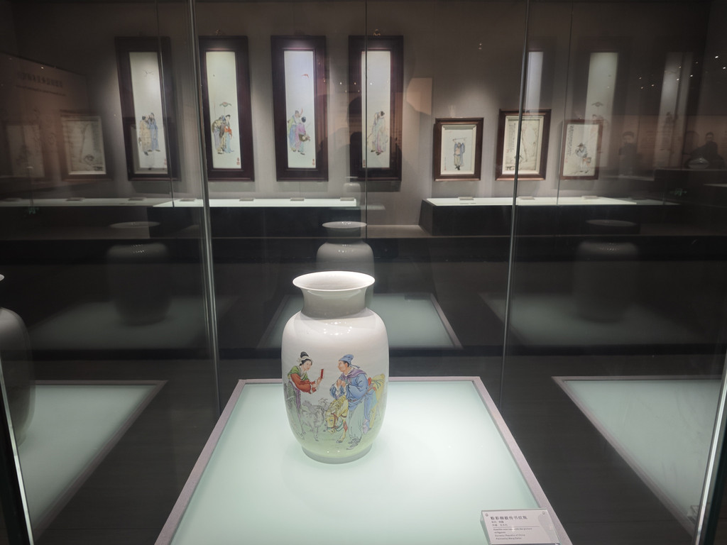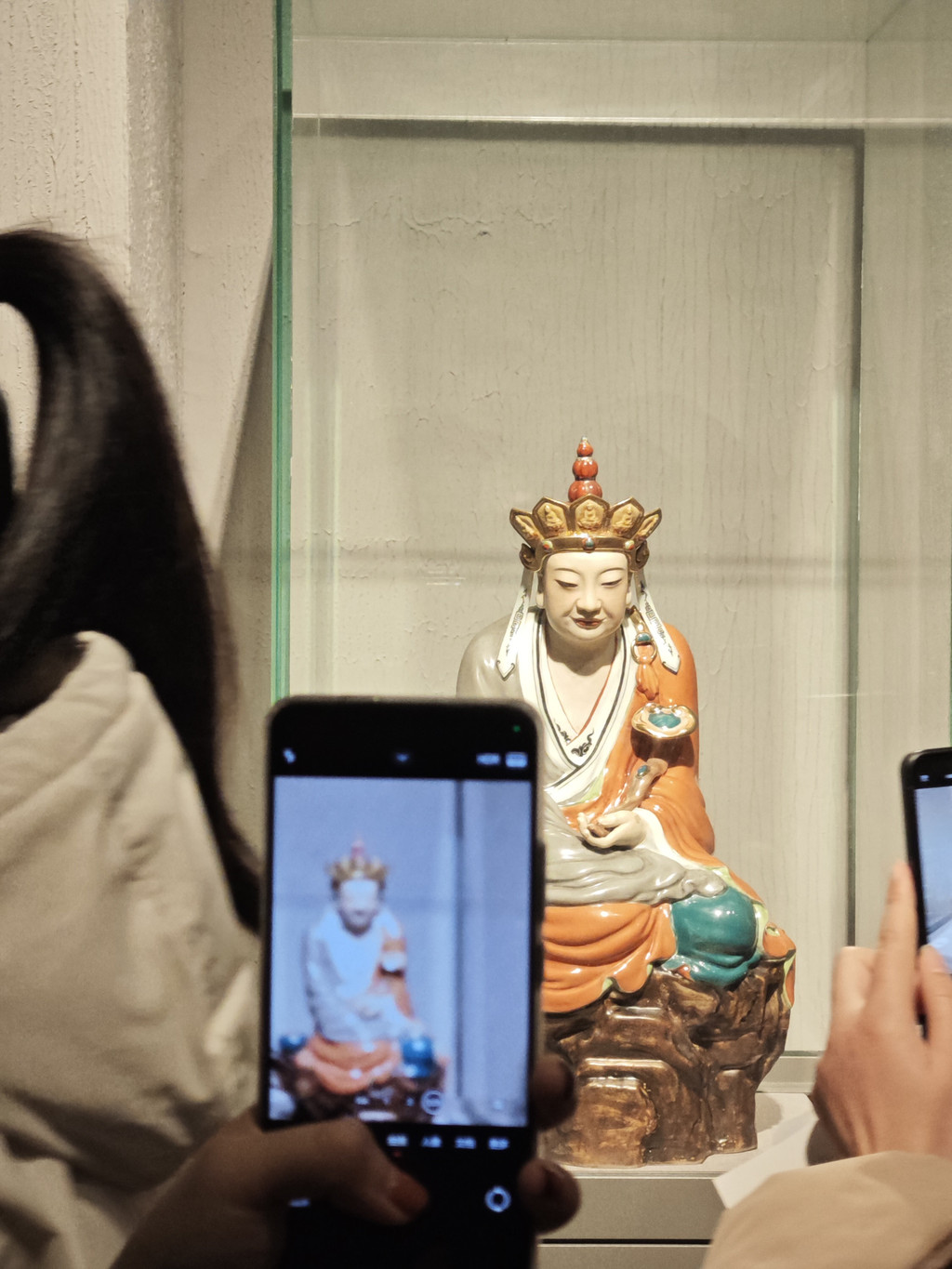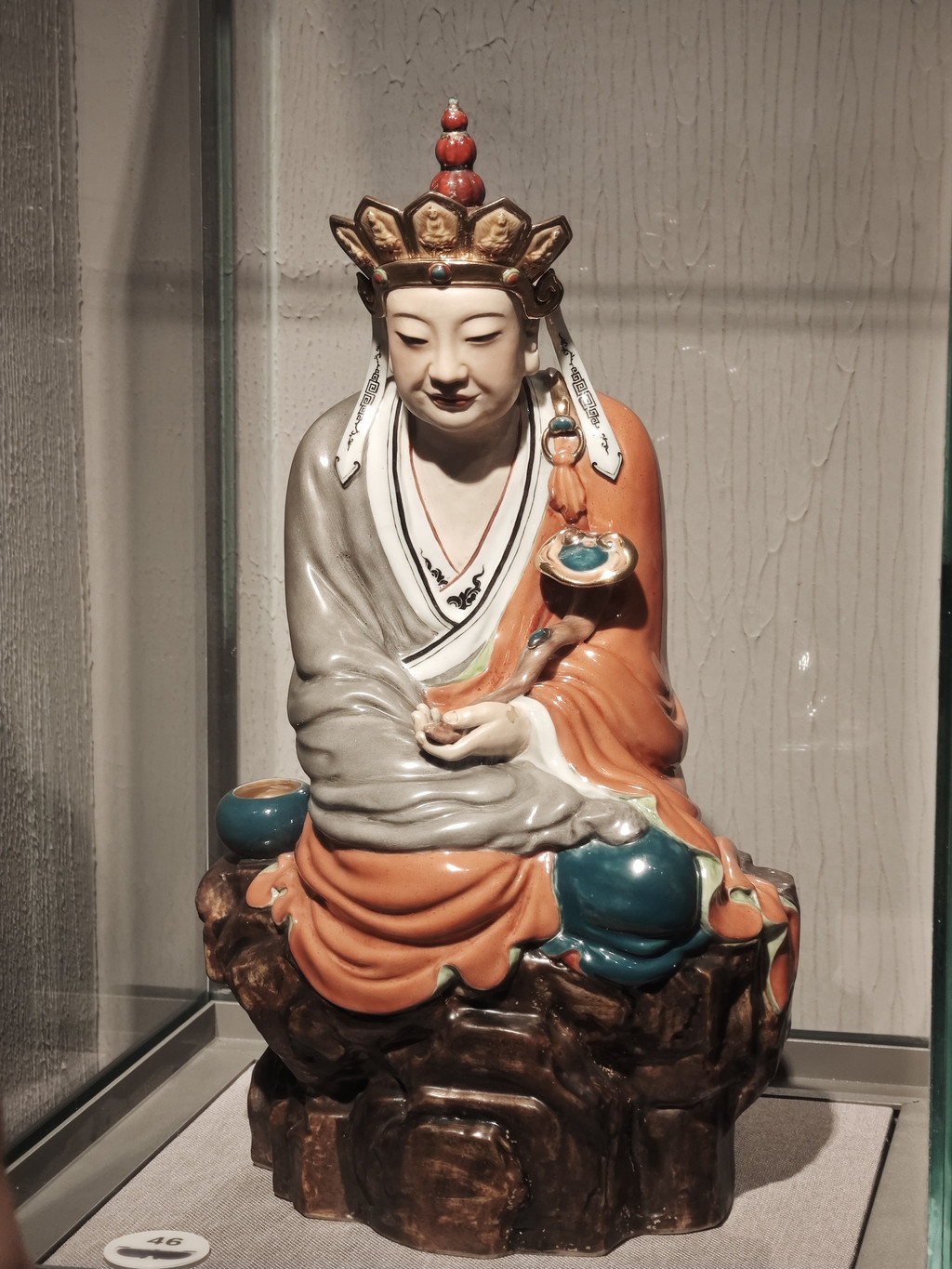 无语菩萨在六楼展厅。它原本是景德镇中国陶瓷博物馆的沉思罗汉,是瓷器艺术大师曾龙升在上世纪三四十年代所作的《釉下加彩十八罗汉塑像》其中一件。