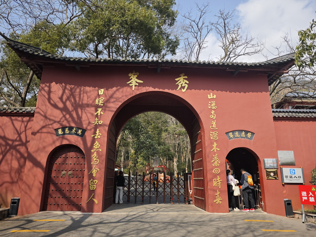 庐山秀峰景区大门。秀峰景区在庐山脚下,游客坐公共交通工具、自驾或包车才能到达。