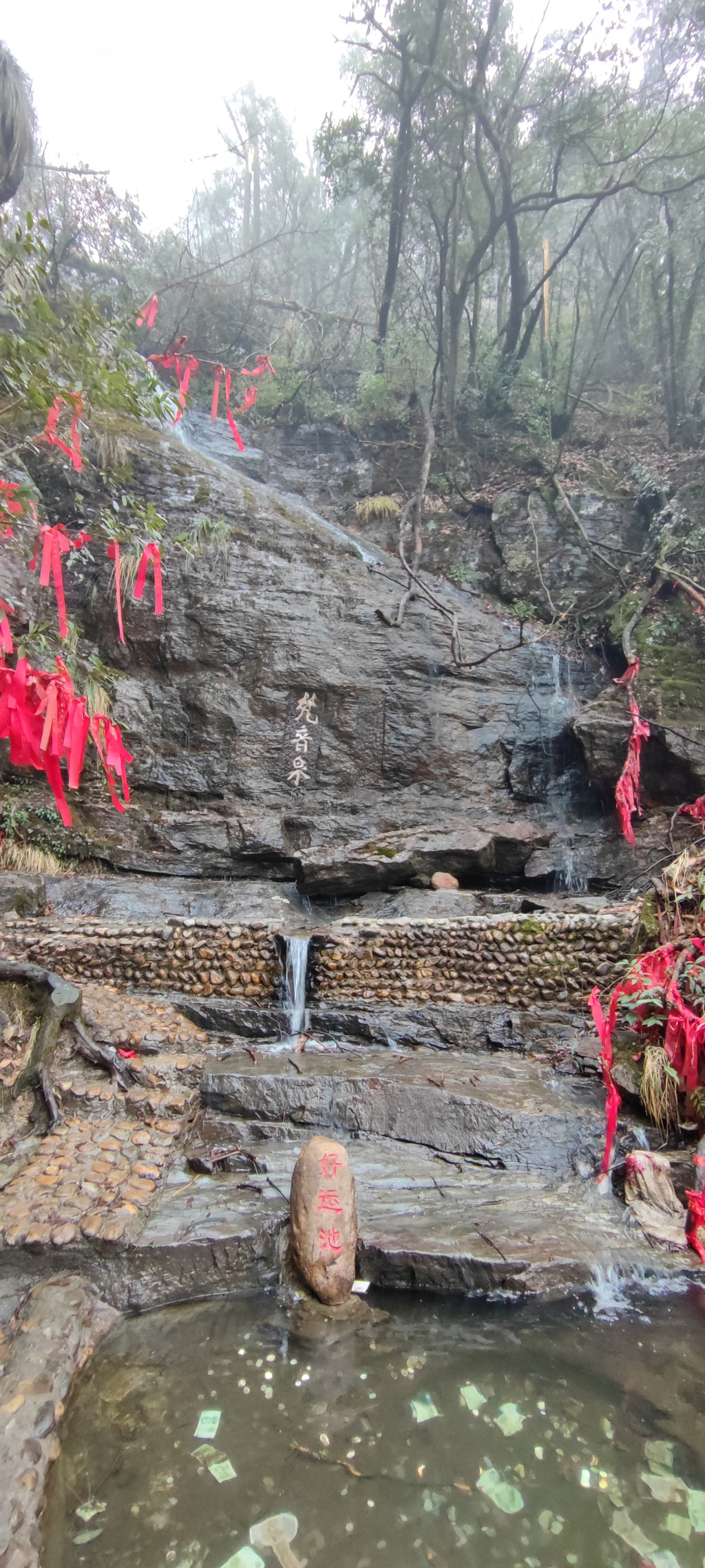 导游讲:每当泉水流过的时候,泉水撞出崖底的石头,就会发出象木鱼的撞击声音。