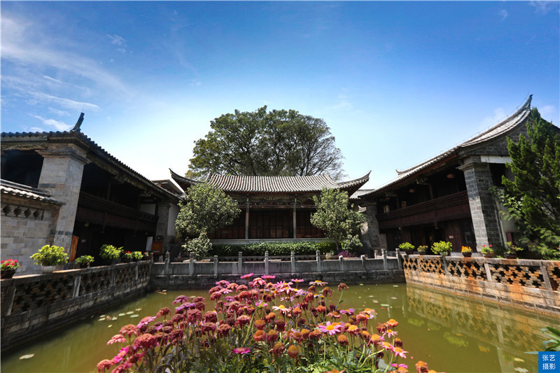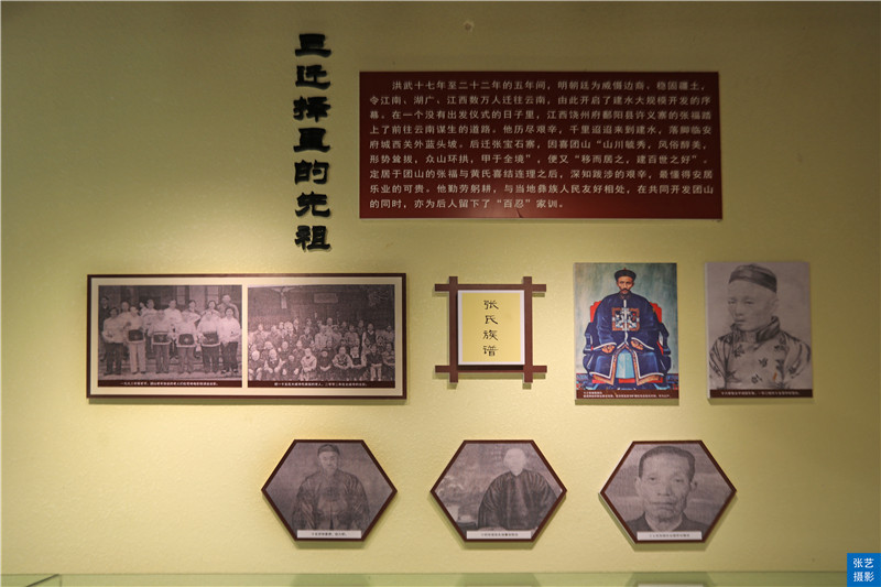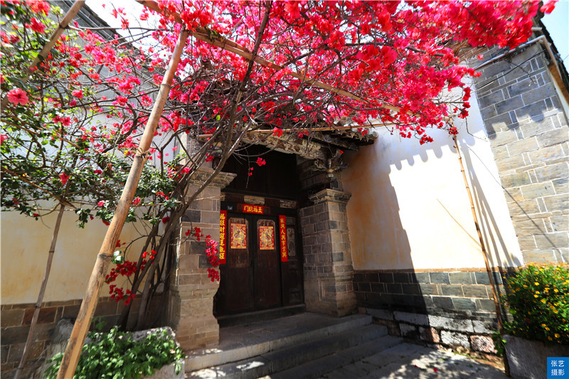 在团山村最为出名的民居当属张家花园了。说到张家,也是一个很传奇的家族,当初跟随移民潮来到了团山村的江西人张福,娶了黄氏为妻,生了两子,大儿子张山留在团山,二儿子张海只身去了大理。而留在团山的张家后代繁衍生息家族逐渐庞大,有不少张氏族人去个旧挖矿,发达后回来修了不少大宅,张家花园就是其中最大最豪华的一栋。