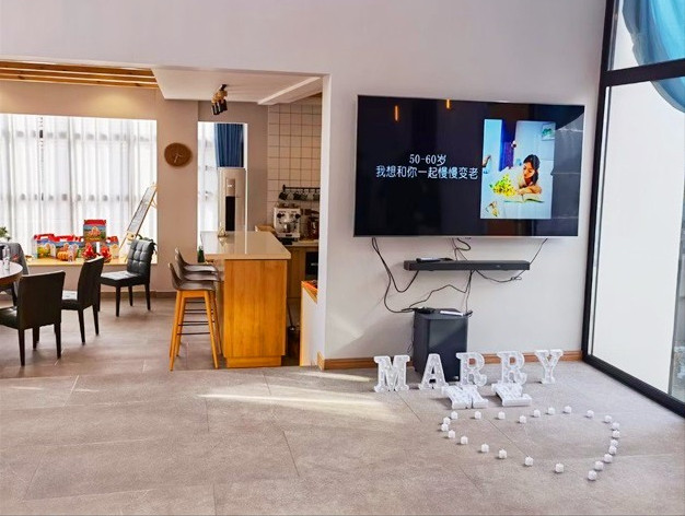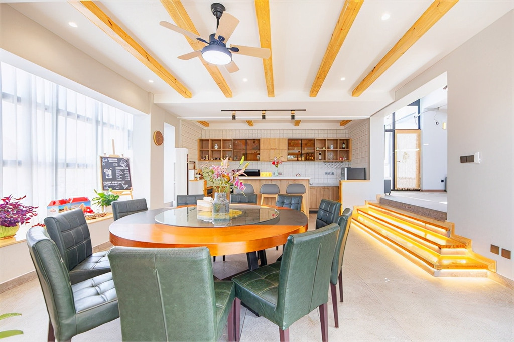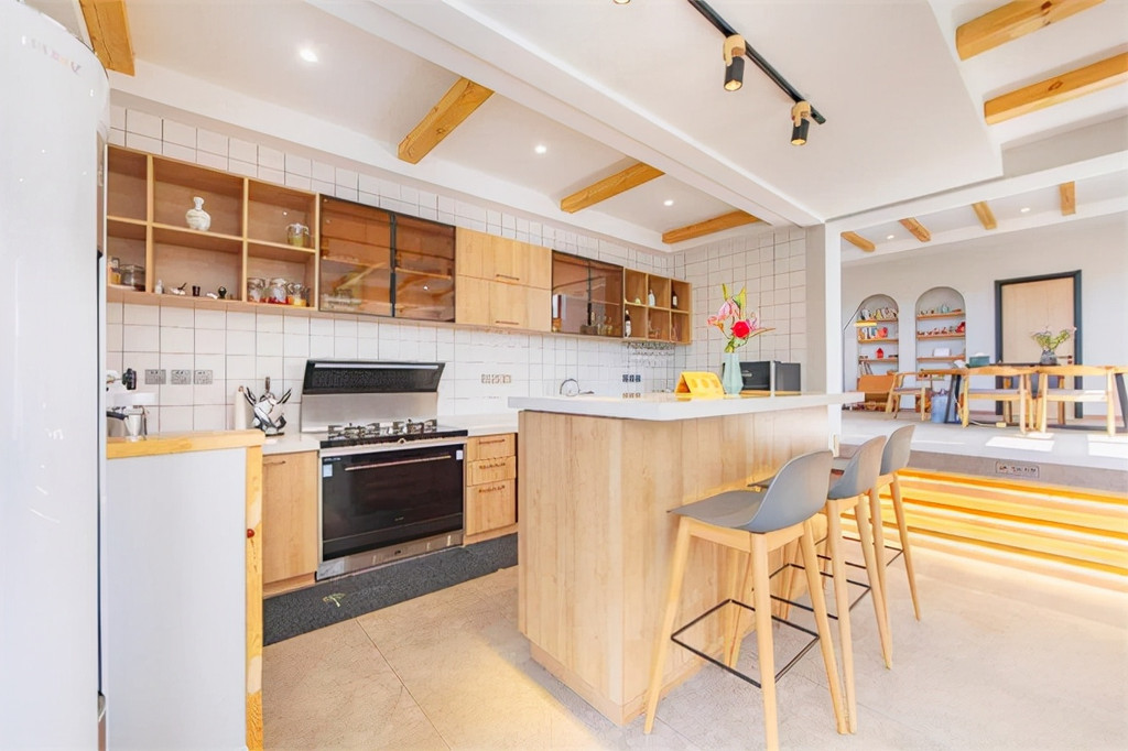 厨房功能更是完善,民宿主人准备了各种调味品,及精致的餐具!厨房设施摆放整齐,温馨舒适,干净清爽!是度假出游、休闲散心、家庭聚会的不错选择,整个民宿的设计简约大方,全都是透过材质与细节的把控,营造出一种真实的自然氛围。亦或是和爱人看一场心仪已久的电影,特别要说的是,配套音响带来影院震撼音效,一定要感受一番。