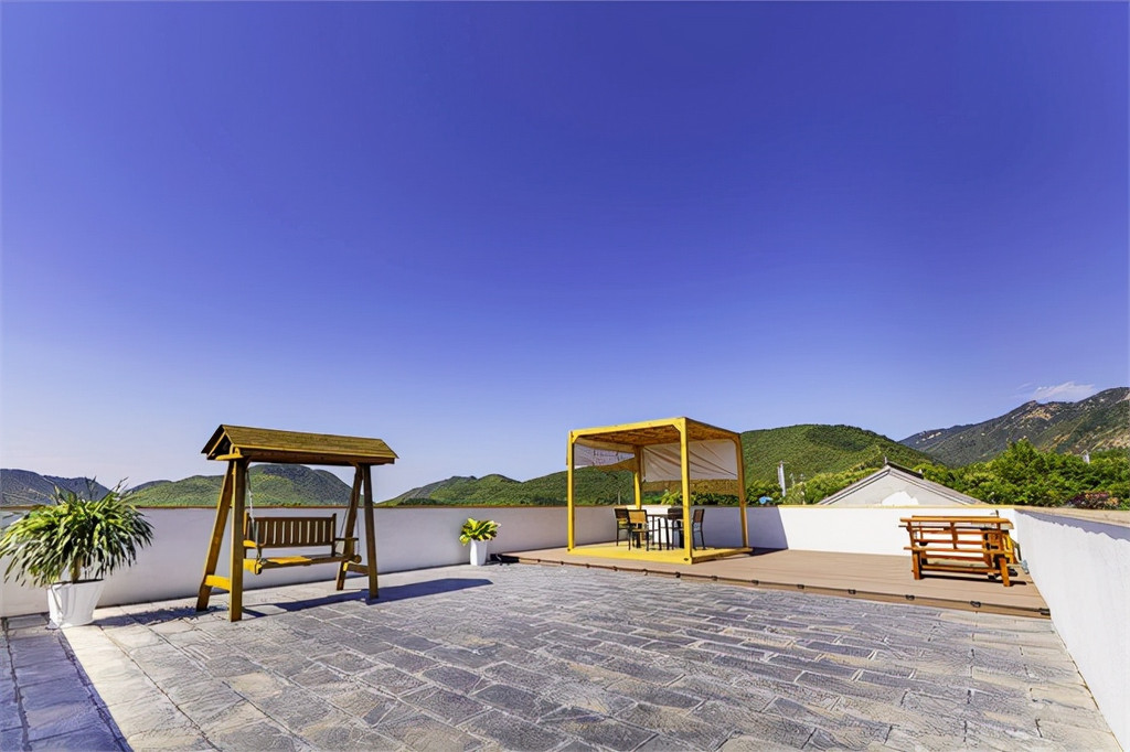 院子楼顶设有180平米露台,摆放了各种设施,秋千,凉亭等,可以静下心来读书写字,亦或是与朋友既然喝茶聊天,烧烤,白天可以晒太阳,晚上可以抬头看星星。民宿的主人可以提供烧烤架,游客需自带食材,就可以在这里享受烧烤的乐趣。