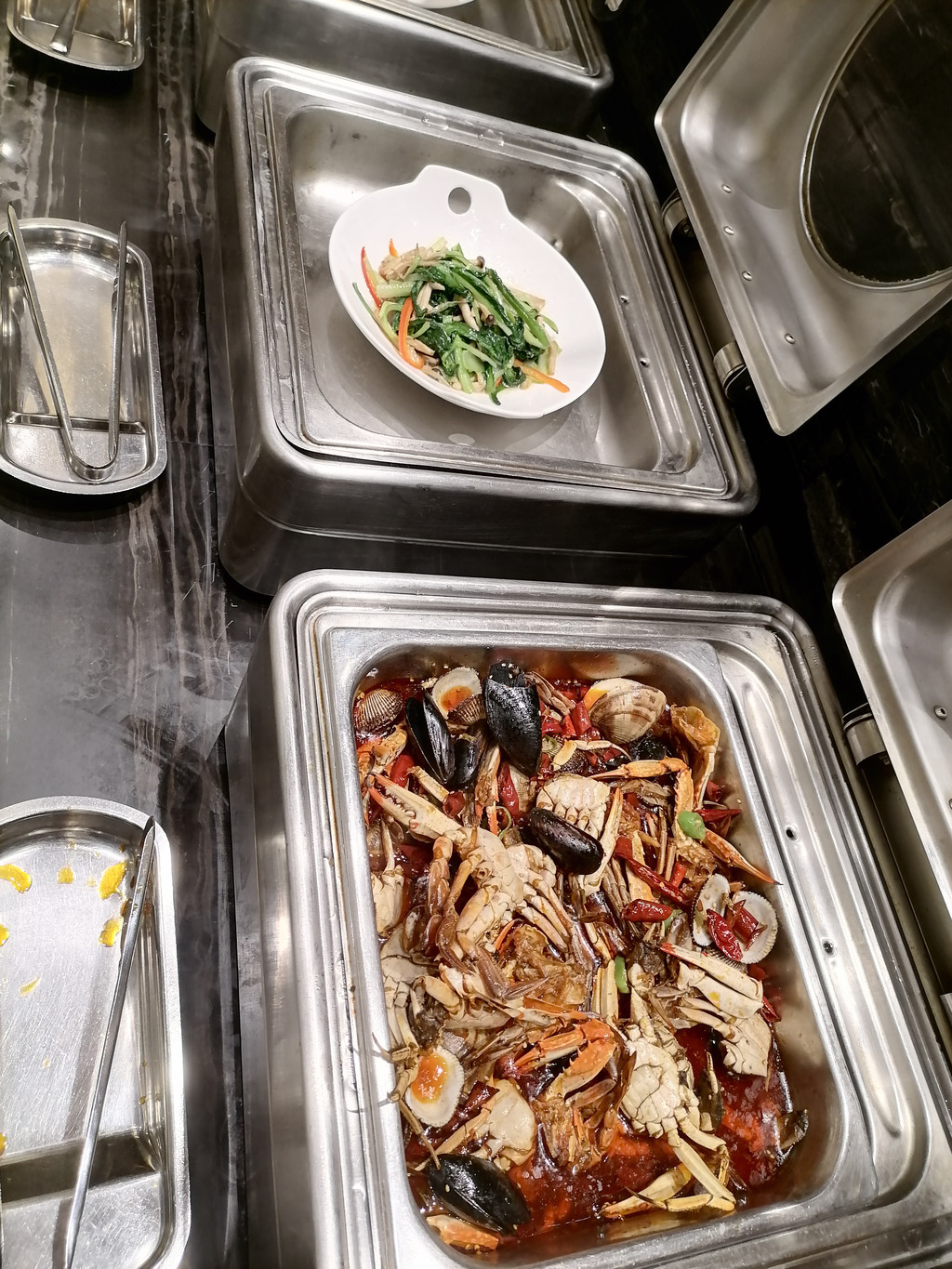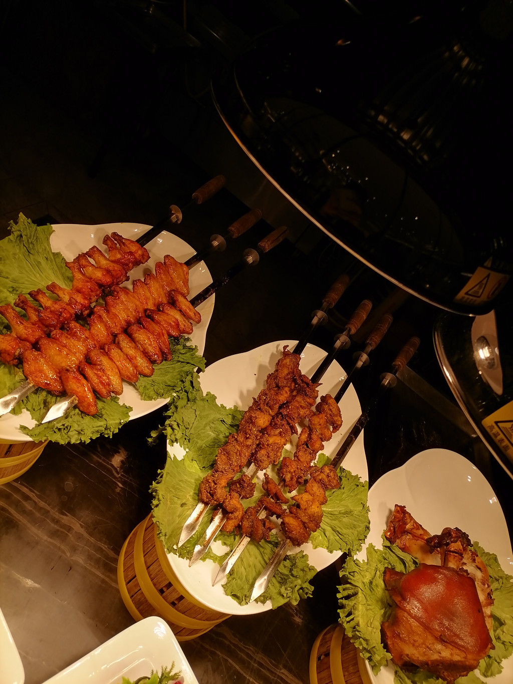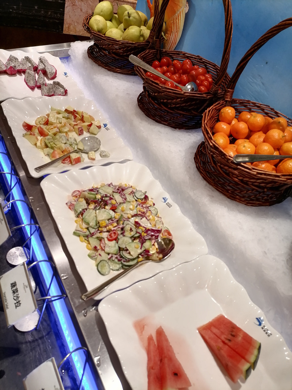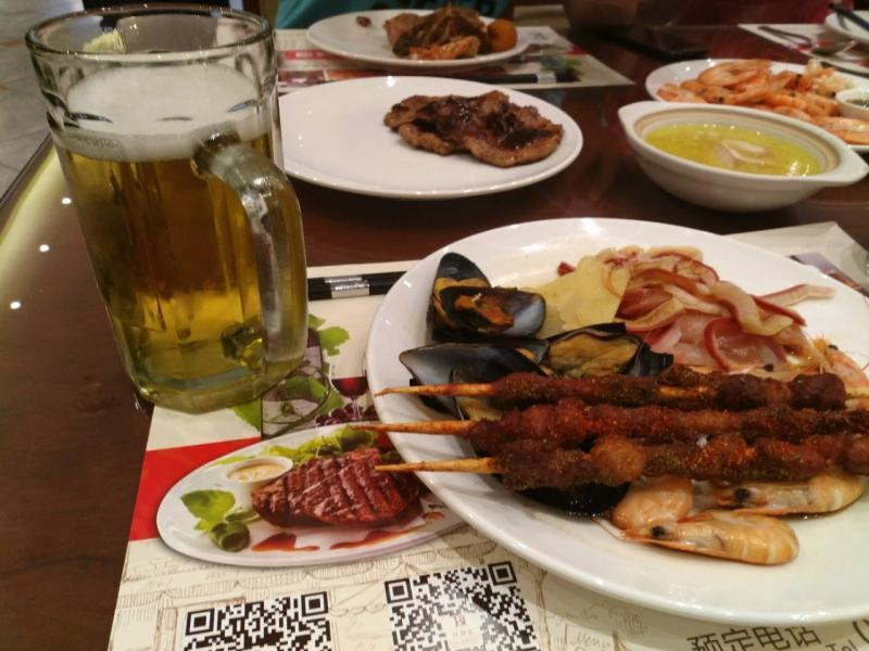 晚餐在酒店的一楼自助餐用餐,全名叫蓝钻国际美食自助百汇,光听这个名字就觉得很高大上了,经服务人员介绍,酒店共有4个餐厅,涵盖了中餐、火锅和自助,可供客人们选择。自助餐厅内装饰也很别致,菜品齐全,种类很多,有牛排,海鲜,时令果蔬、烤串、卤味、小糕点等等,应有尽有,口味很不错,孩子吃得很开心。
