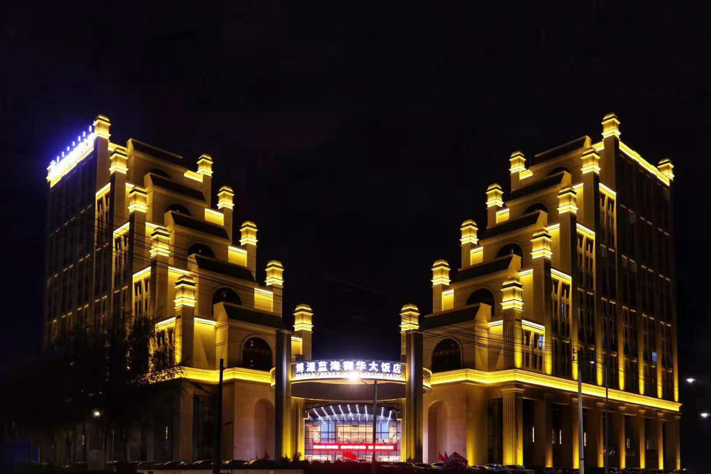 途径乌兰浩特市,在携程上查找好评率第一的酒店,博源蓝海御华大饭店出现在了第一位,在查看评价以后果断选择了这个酒店,房间预定好后接到了酒店的电话,询问对房间是否有其他要求,得知我们有小孩,还特意问了孩子的性别,要给提供儿童拖鞋等等,这一举动让我顿时感觉选择这个酒店是十分明智的,酒店地处矿泉东街洮儿河东侧,刚刚行驶过洮儿河,酒店就出现在眼前,一个阶梯状的酒店犹如大鹏展翅展现在我的面前,酒店前面的停车位简直是我们停车困难者的福音,也让我十分期待这次入住。