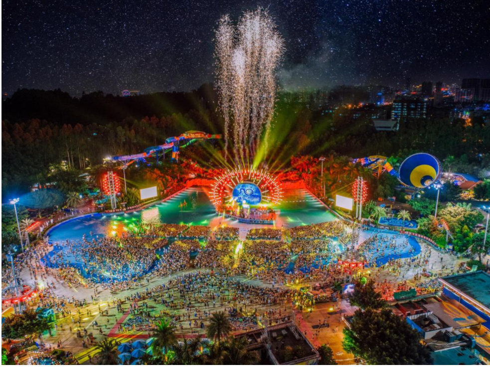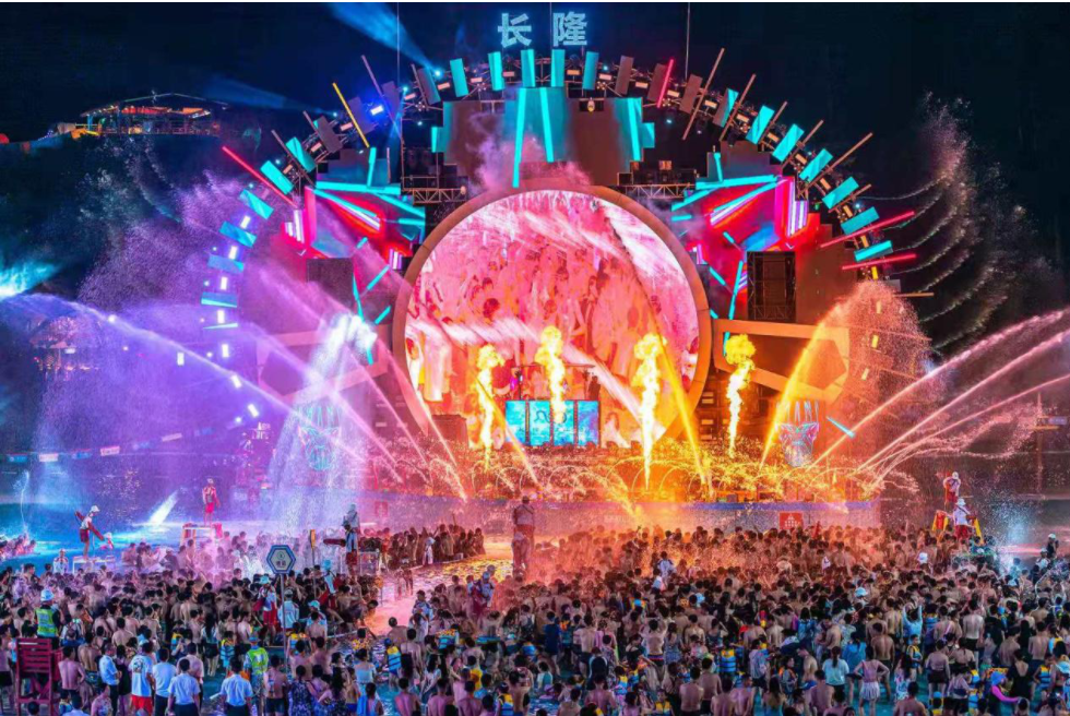 酷炫的灯光,热辣的舞蹈,电音的狂潮,在闷热的夏夜,当游客身处透爽清凉的池水中,享受音乐的硬核炸场,放下包袱和压力,举起双手在炫酷的电音与灯光的交织下恣意狂欢乐。如今,这样的场景早已成为中国水上主题乐园的标配,而这一模式的“缔造者”正是长隆集团。