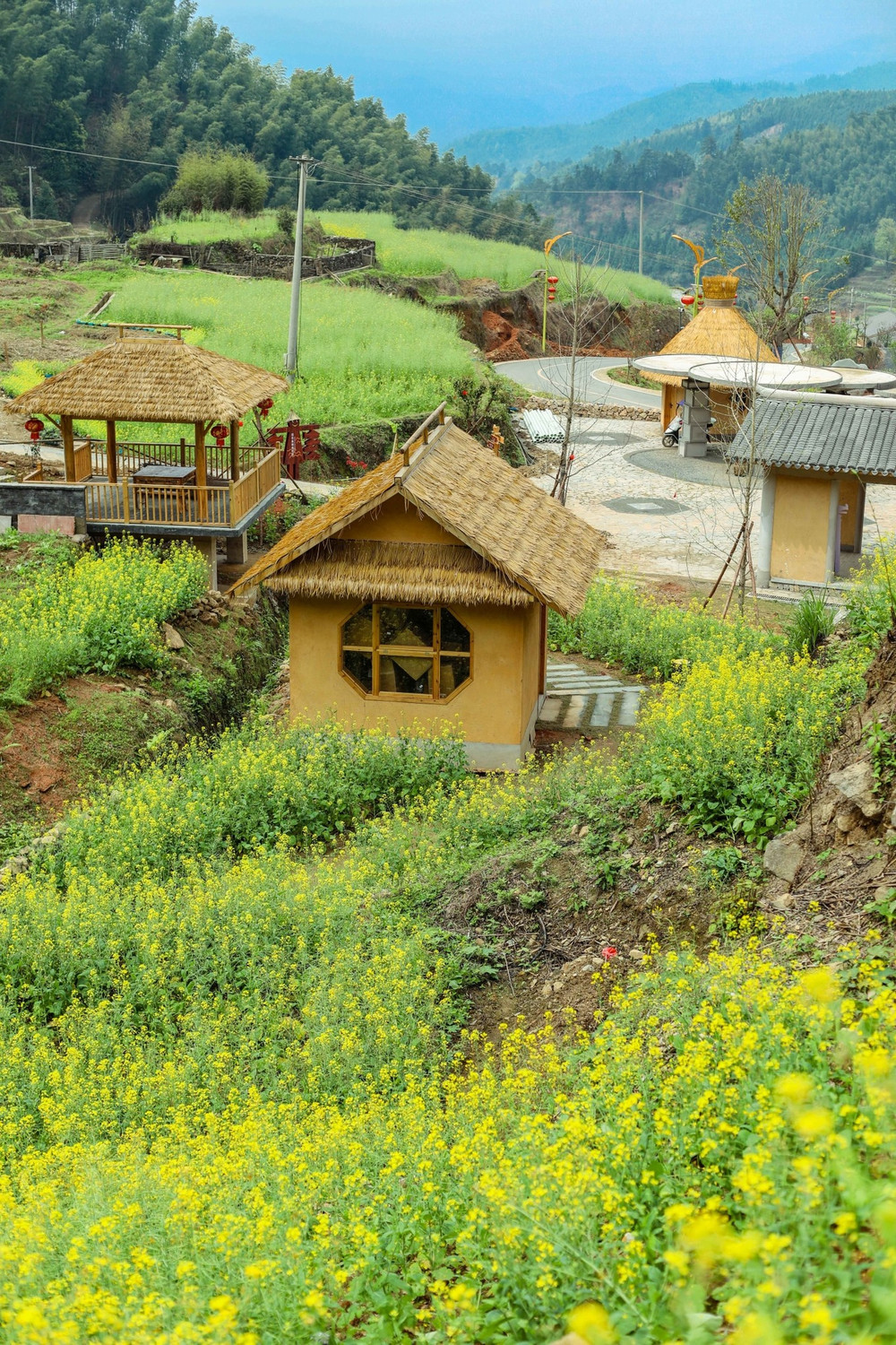 来到这里的时候,虽然油菜花的花期已经稍微过去,但在这里,仍未凋谢的油菜花点缀在各个建筑当中,充满了春天的味道。