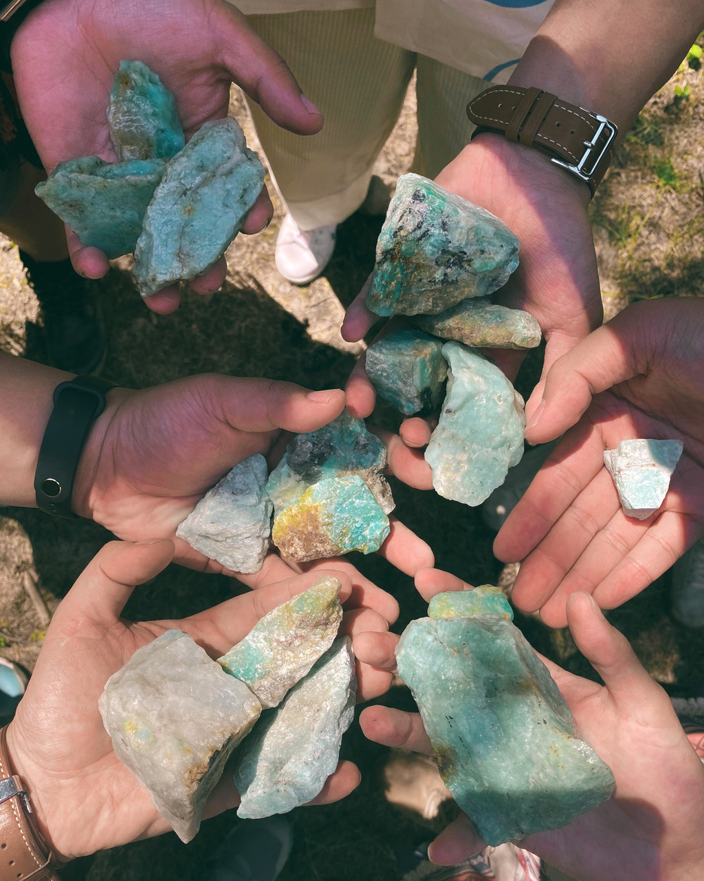 和当地牧民打听到了黄堇溪所在地,我和小伙伴们溯溪而行,满地不停的捡海蓝宝石,大家杀红了眼,完全拼的是眼疾手快,超级开心。
