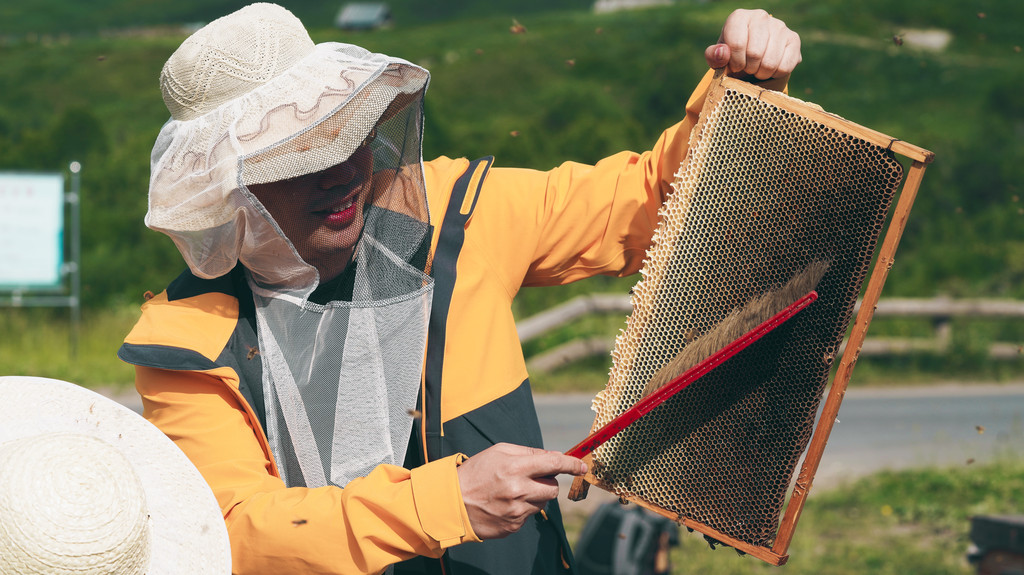还有给他们喂食的,禾木独有的高加索黑蜂!