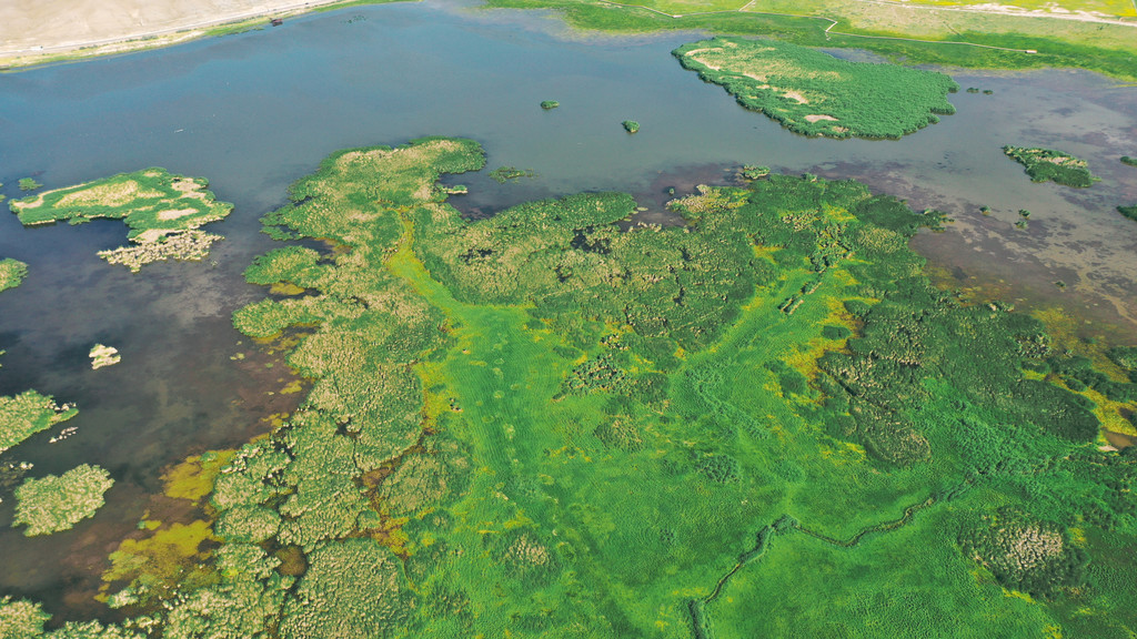 偌大的一个野鸭湖,里面根部交错的芦苇丛行成了20多个浮岛,水生植物极其丰富。微风吹过,芦苇丛随风飘逸,风一场景一场,摇摇荡荡,一副美丽的水草画卷。