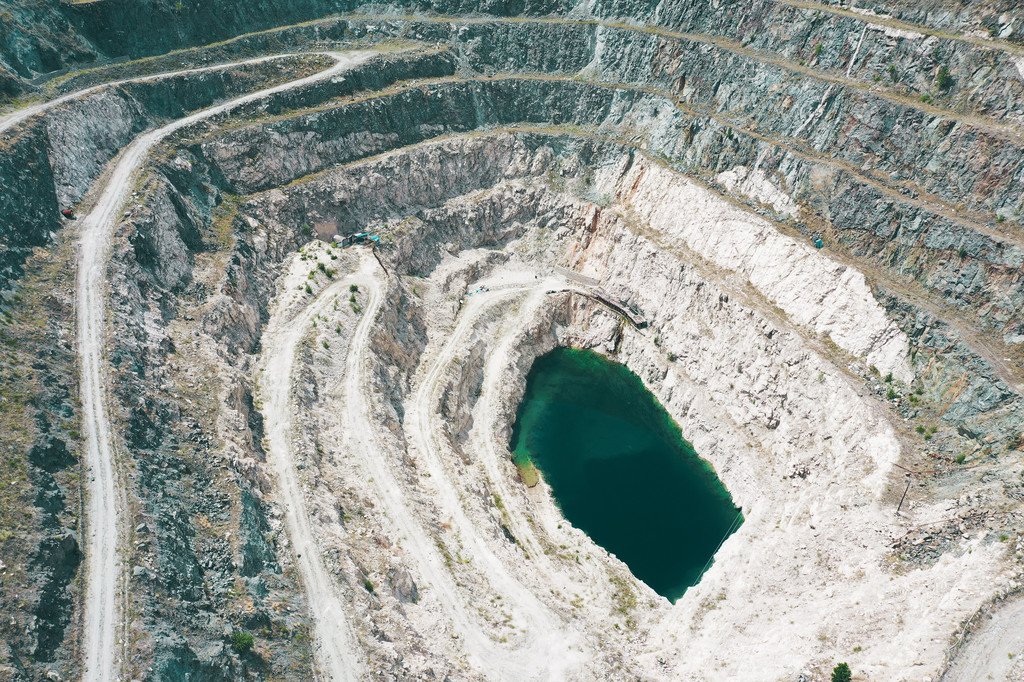 可可托海著名的3号矿坑,富集度世所罕见,世界羡慕,云集了世界61%的已知矿种,从空中看宛若翠绿的眼眸。