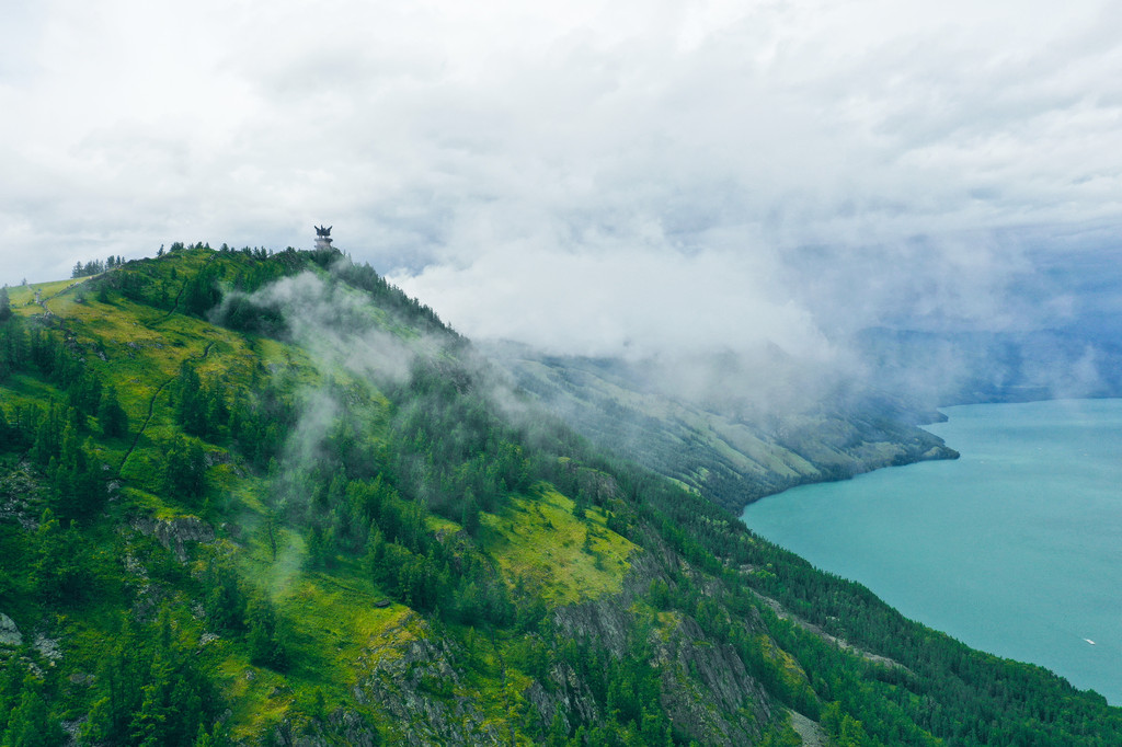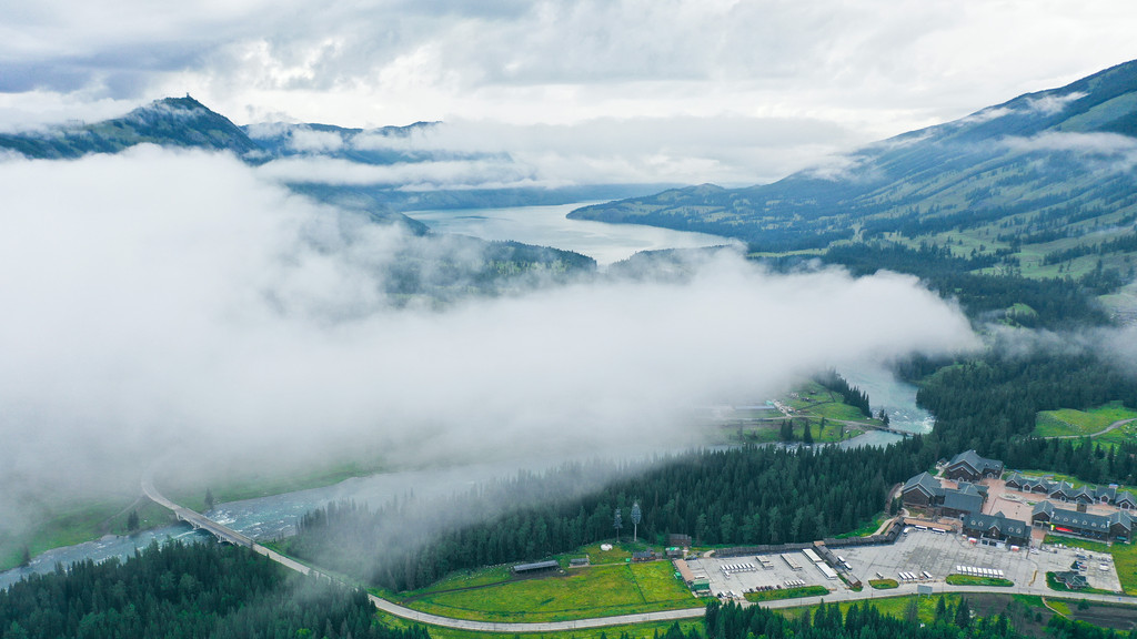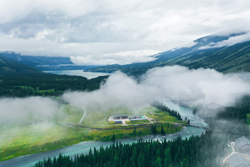 喀纳斯主打经典,就是三道湾和观鱼台了。 喀纳斯河水,蜿蜒曲折,美妙的身姿在三个地方最好看,这便是赫赫有名的喀纳斯三道弯了。第一道卧龙湾,此龙非诸葛卧龙,也不是一飞冲天的恐龙,而是说河面草坪有一处和上古霸王龙及其相似,因而得名。第二道湾呢,便是月亮湾,美妙的河水和岸畔形成了一道弯月,充满温柔的诗意。最有一道,则叫神仙湾,时常仙气氤氲,仿若神仙的住所。 只看到三道湾,对喀纳斯来说只是管中窥豹,若想一观全湖胜景,那就只有一个地方了,这就是扼在湖口处的观鱼台 。