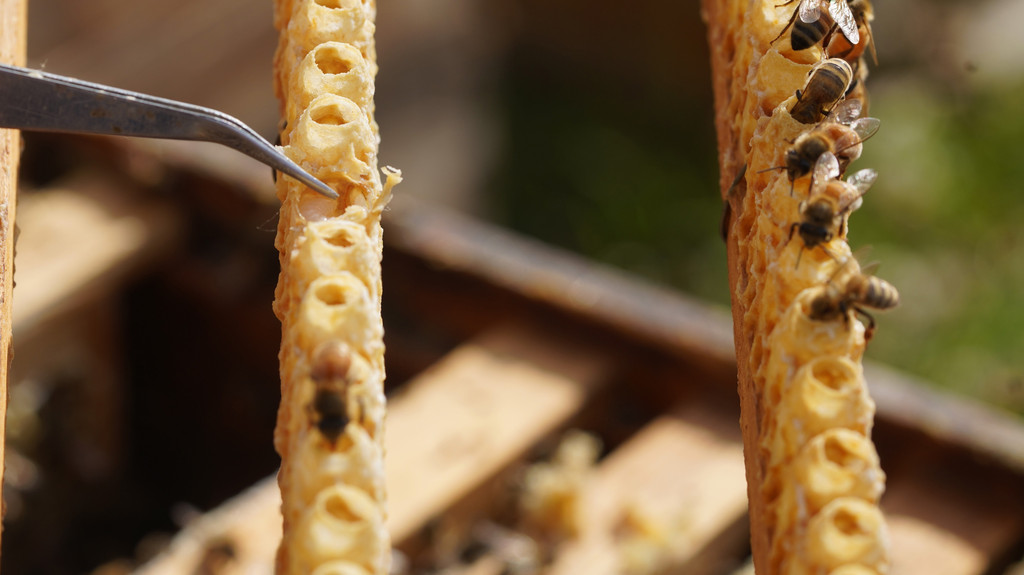 路遇了养蜂女,让我亲手割了一把蜂王浆。