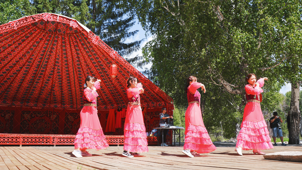 刚进入景区时,可以先在白桦林民俗体验中心小憩,骑骑马,骑骑骆驼,听听哈萨克牧民的歌舞表演,还有满目郁郁葱葱的白桦林,间以冷杉、云杉和落叶松。花草满地,枝繁叶茂,极其适合打卡拍照。