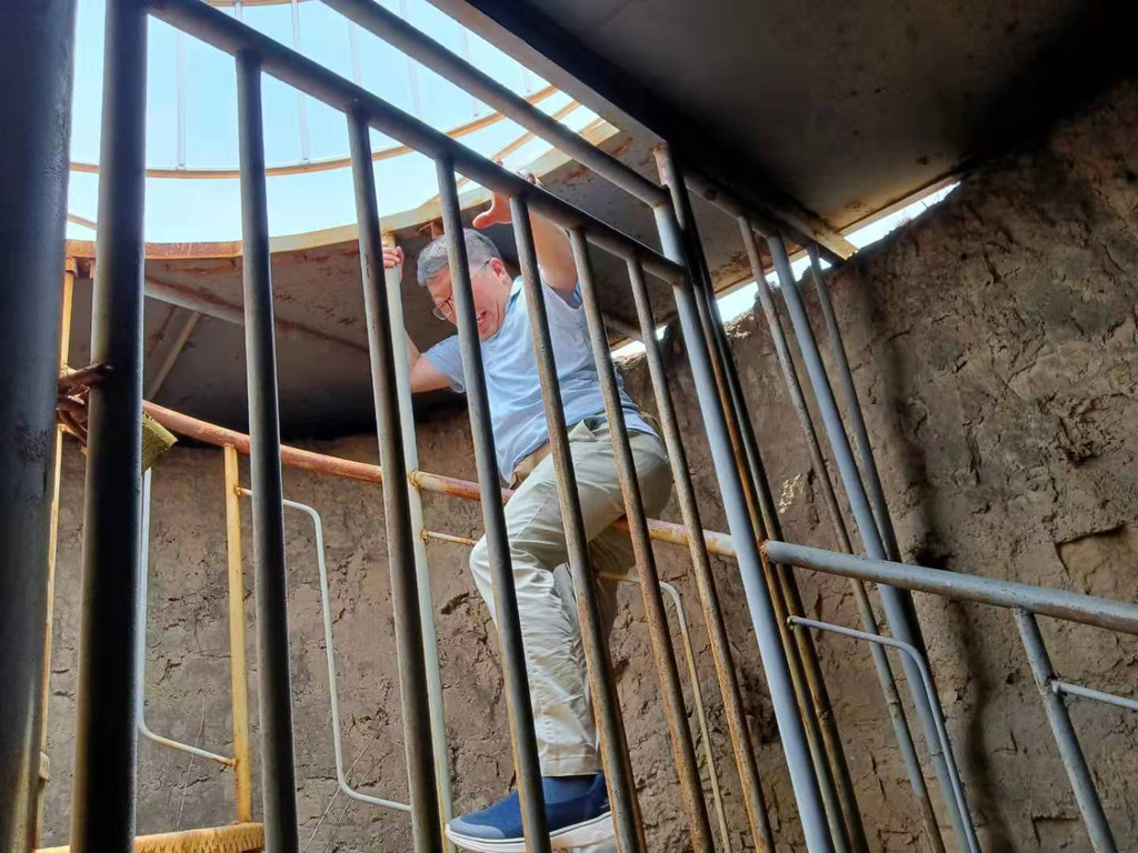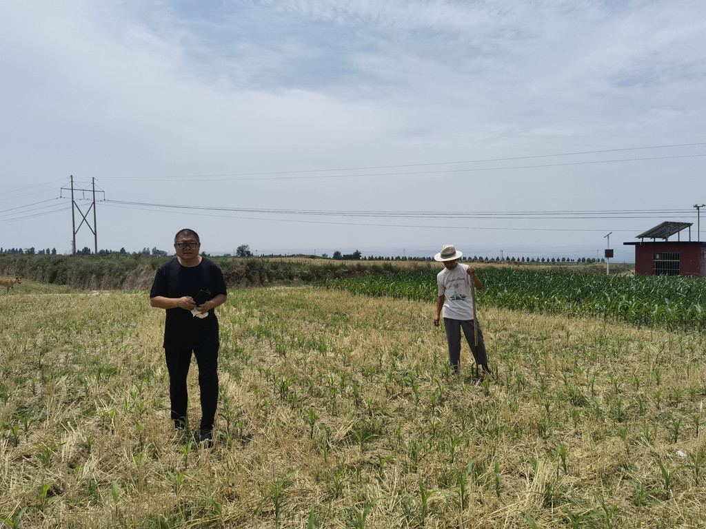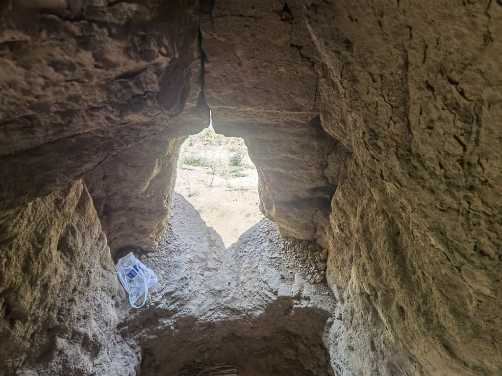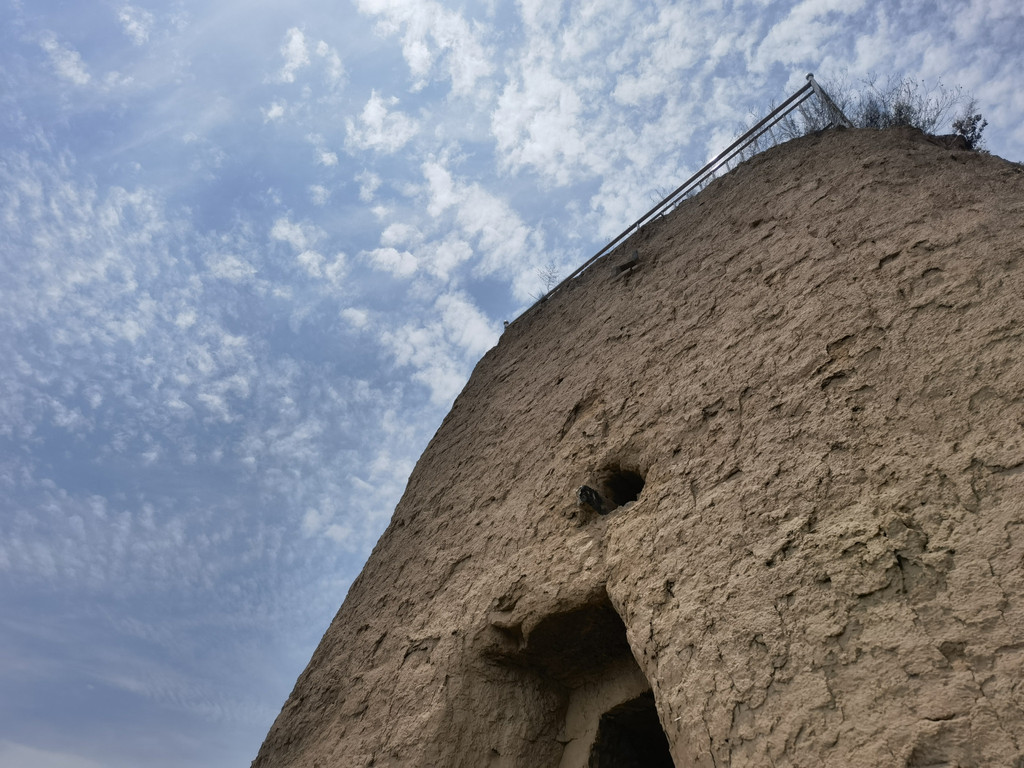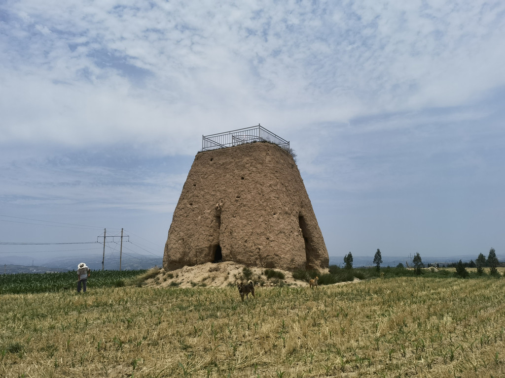 有一个小插曲,在烽火台前有一位老大爷在锄地,他告诉我们里面有楼梯可以上去,我们上去之后看到锁门下来了,他说旁边有口可以翻过去,我们又进入,然后“翻越而入”,上到了顶部,老大爷还向我们做了简单的介绍。