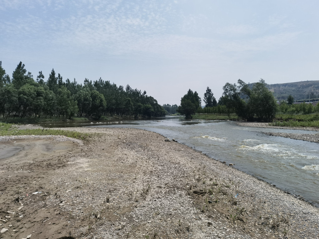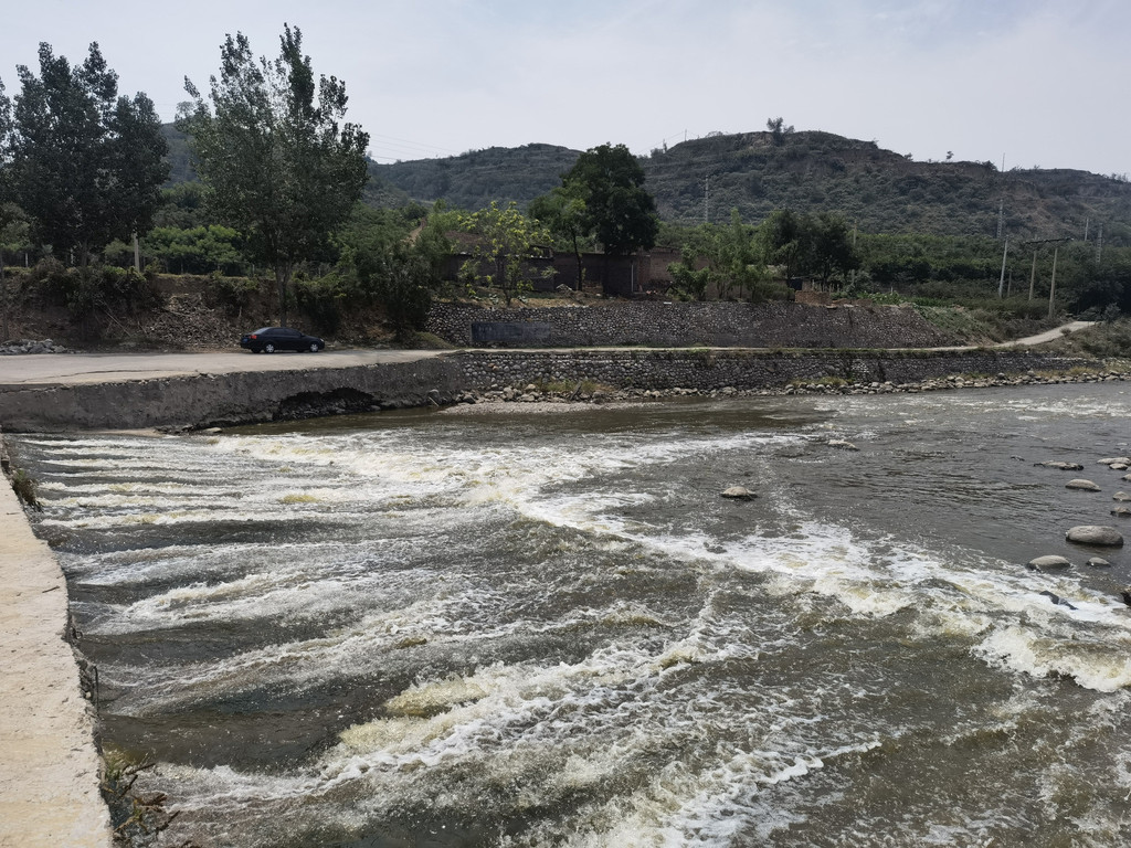 临近石滩村汾河在这里分叉,露出一片石滩,顿时就想起了“石滩村”的名字,或许与这里的汾河石滩有关。我们走过石滩村,打听了烽火台的位置,在村头停车步行沿途寻找石滩村的风光。