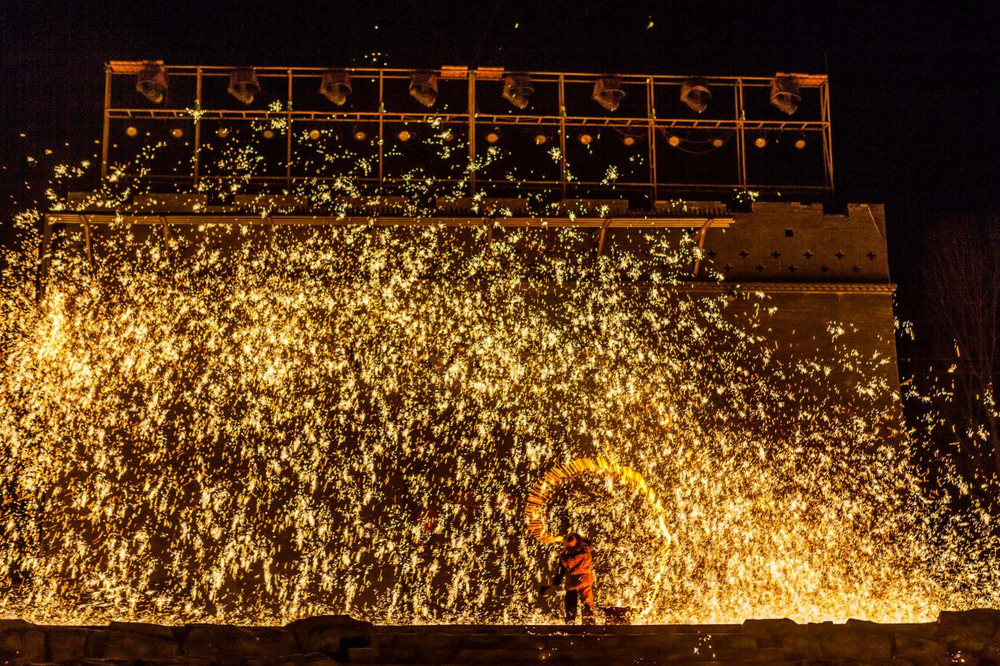 考虑安全和现场表演,现在已经易地表演了。北官堡堡门上留下斑斑铁渣,让人回味火树银金花的热火场面。