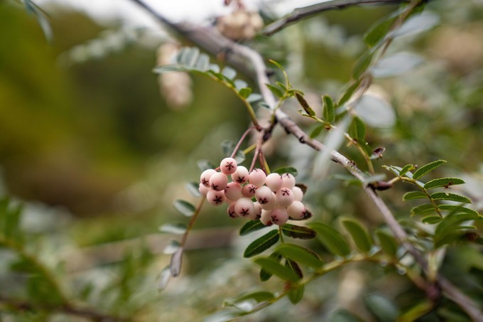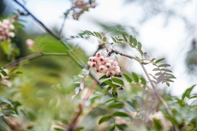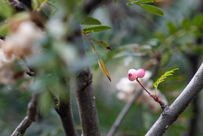 除了自然景观,雪巴沟还拥有丰富的动植物资源,有很多还属于国家级珍稀物种, 比如 国家一级保护动物:云豹、白唇鹿、普氏原羚、金雕、眉雕、斑尾棒鸡、胡秃鹫、绿尾虹雉等。据说,在雪巴沟酒店的不远处,早上出来散步就能看见白唇鹿,这好像就是圣诞老人的坐骑,是很吉祥的神兽,碰到的人会好运连连。可惜早上因为睡了懒觉没能看到,可惜了。不过我们看到了一种果子,从来未见过的小果子,粉粉白白小小的,像豌豆般大小,就尖上带点嫩嫩的浅桃红色,在雨水的浸润下很粉嫩,娇艳欲滴惹人爱,最终还是克制住了想尝一口的想法,免得像吃错了野菌子一样躺板板,哈哈。