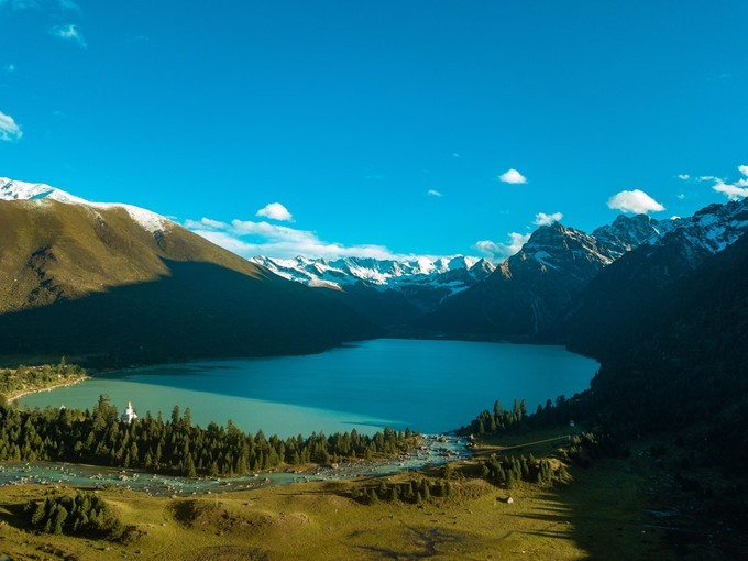 据景区工作人员介绍,漫步在雪巴沟的山谷中,可以看到大片的高原牧场和茂密的原始森林,里面除了少量的藏式民居,鲜有外人进入,可以说是一个人烟稀少的世外 桃源 ,到了秋天,山上全是积雪,而森林则层林尽染,放眼望去,满目若画,完全不逊于 稻城 亚丁,难怪民间有着藏东“小亚丁”之美誉。