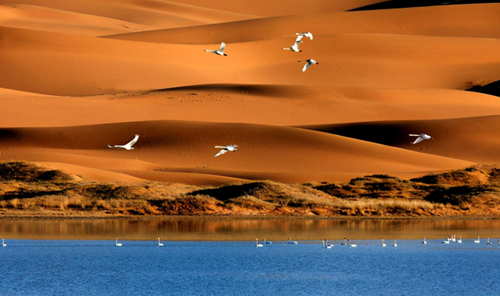腾格里五湖穿越,五湖分别为:天鹅湖-乌兰湖-苏海图湖-太阳湖-月亮湖,这五个湖是沙漠中的天然湖泊,景色非常的美,在这里可以看到无边的浩瀚沙漠,湛蓝清透的天然湖泊,结束沙漠穿越后就可以返回银川市区,结束此次的额吉纳旗的行程了。