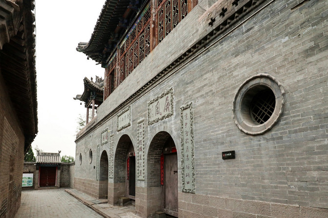 紧挨门楼又建倒座乐楼(戏台),前后建筑连为一体。戏台结构奇特,建筑精巧为临县古建筑之首。乐楼为欧山顶,琉璃瓦剪边,十分美观大方。