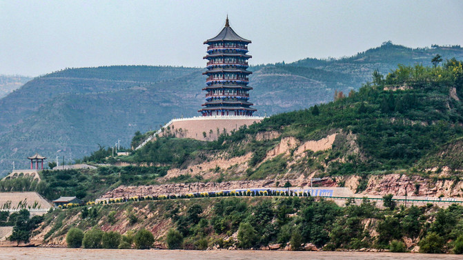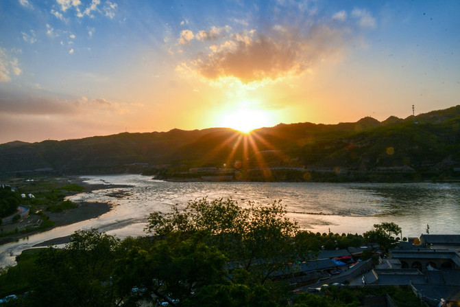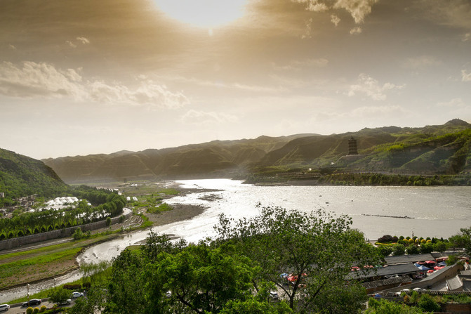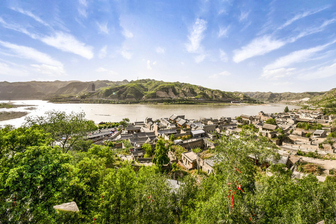 远眺黄河气势,近观湫水曲折,俯瞰古镇与陕西榆林隔河相望的壮阔美景。