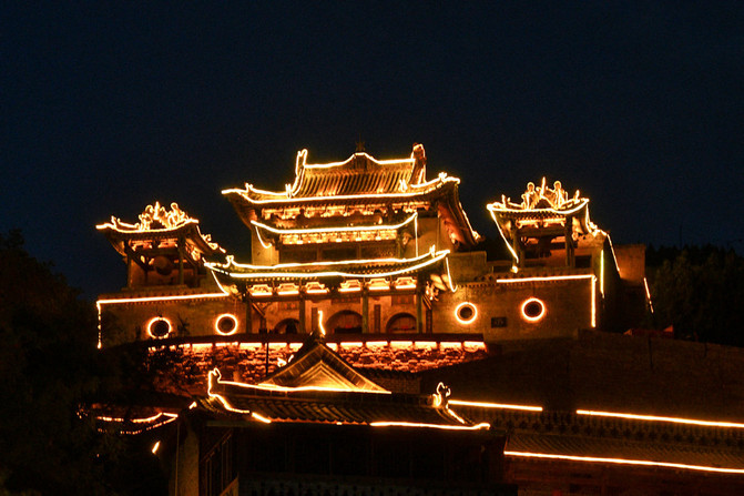 回头看看黑龙庙的夜景