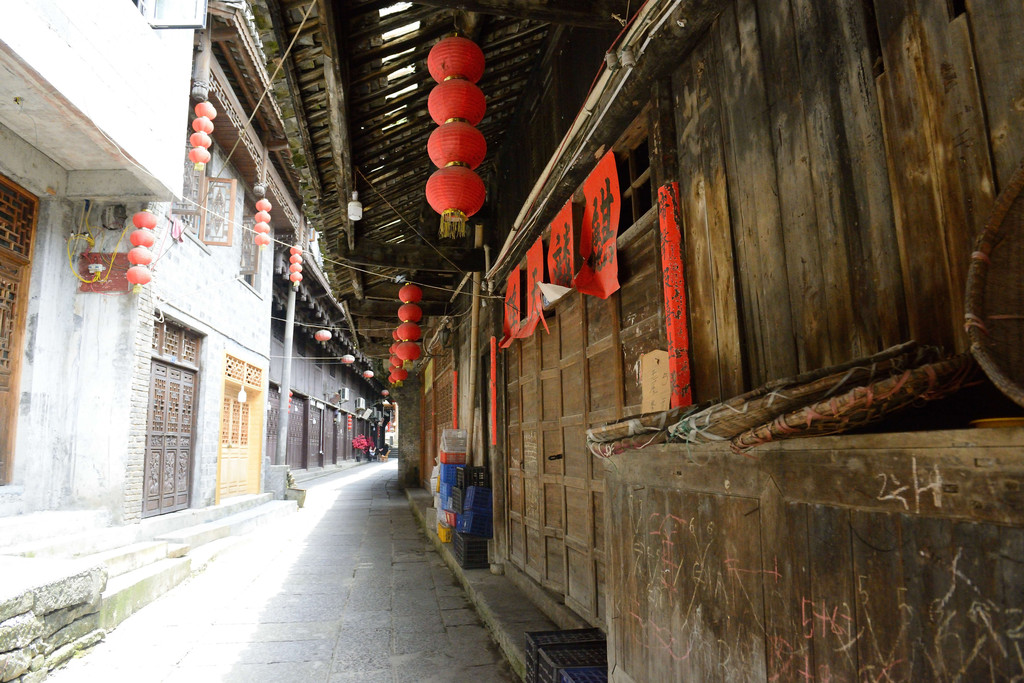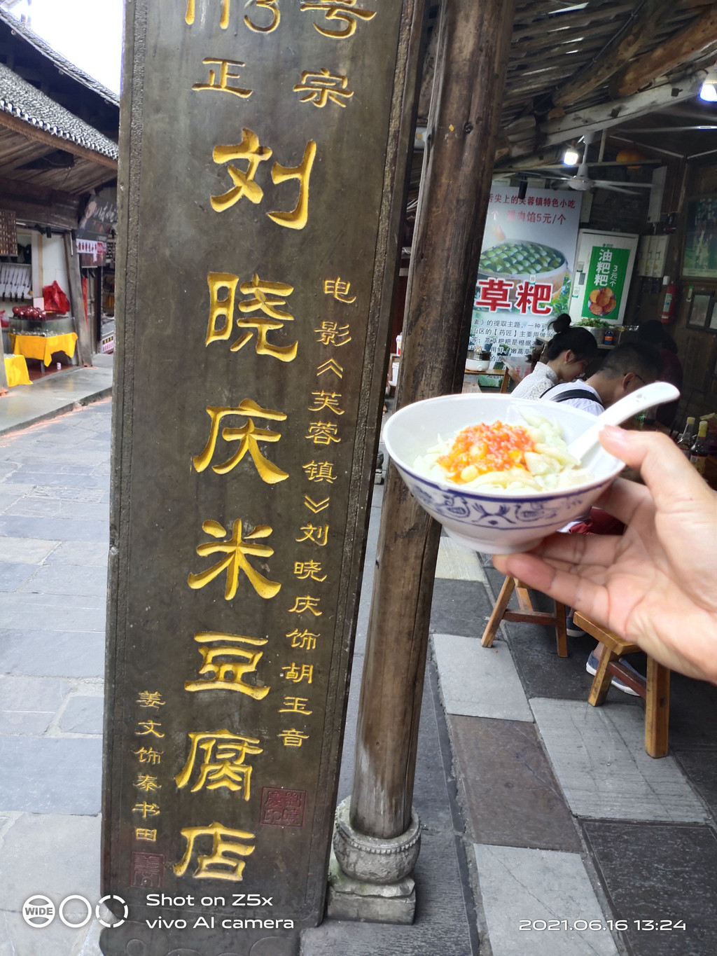 再往左走有几条小巷,其中一条会见到一个牌坊,旁边就是刘晓庆当年拍摄《芙蓉镇》经营米豆腐的小店,好象是113号。