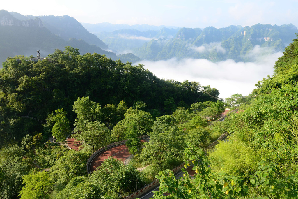 由于公交车10点左右才到,我沿着来路往回走(公交站),到了刚才到过的平台,但这时云海已完全退去。变化也大快了,前后才20多分钟。