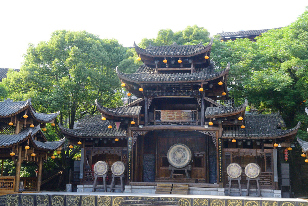 入大门不远有个仿古建筑楼叫摆手堂,它的对面是土司楼。摆手堂晚上有歌舞表演。