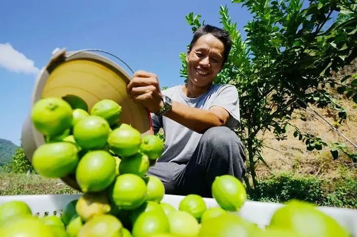 独特的低海拔地势、光照长的热带气候特征,还让蔗香有了新的解读:到处甘蔗成林,四处瓜果飘香。走进蔗香柠檬种植基地,只见漫山遍野的柠檬树上挂满了硕大的柠檬,令人垂涎欲滴。