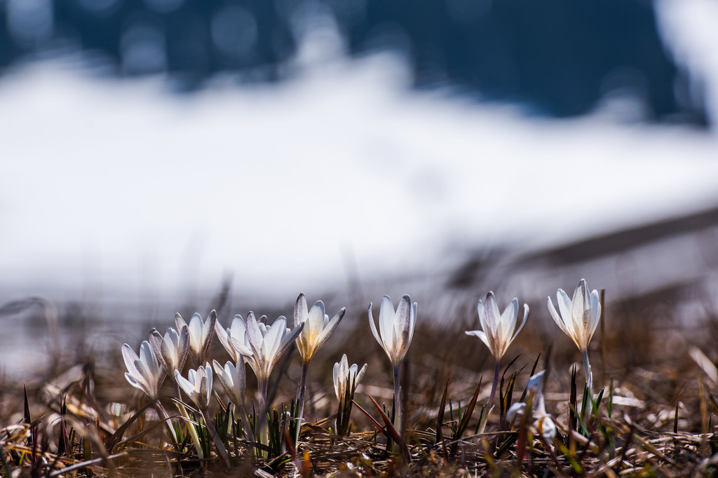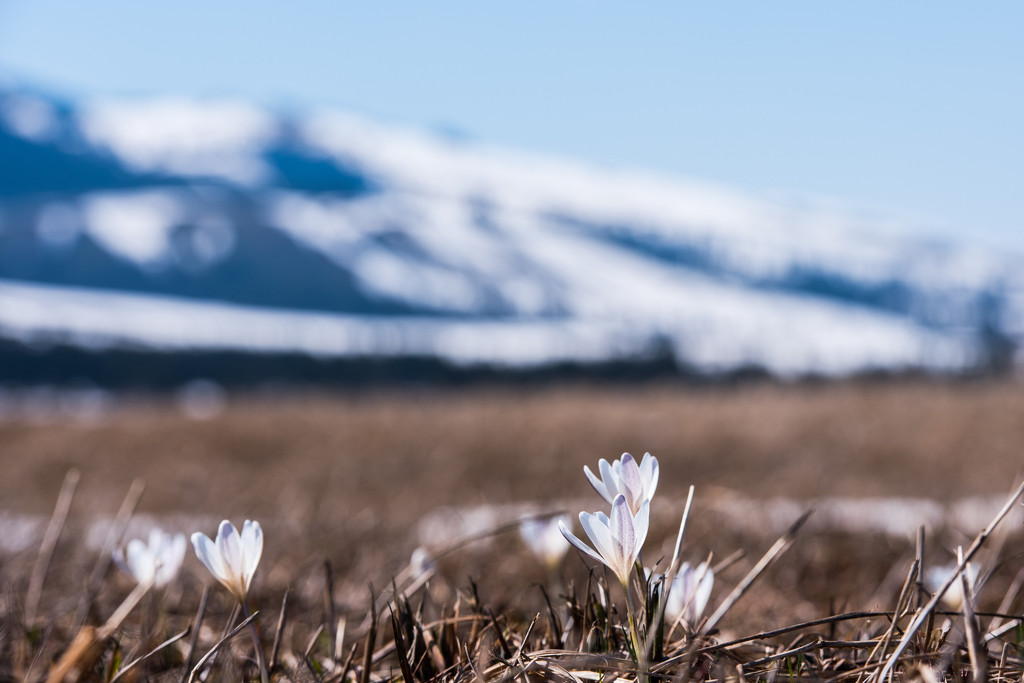 选择此时来到那拉提,是因为央视的一则新闻:在天山脚下的新疆那拉提草原,四月的冰雪才渐渐消融,被当地人称为“顶冰花”的白番红花,在冰雪中盛开。新闻中所说的白番红花就是即将顶开冰雪,在那拉提草原第一朵盛放的花儿精灵。