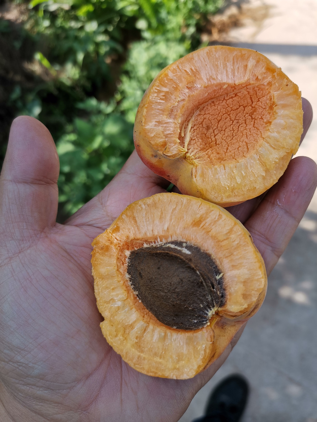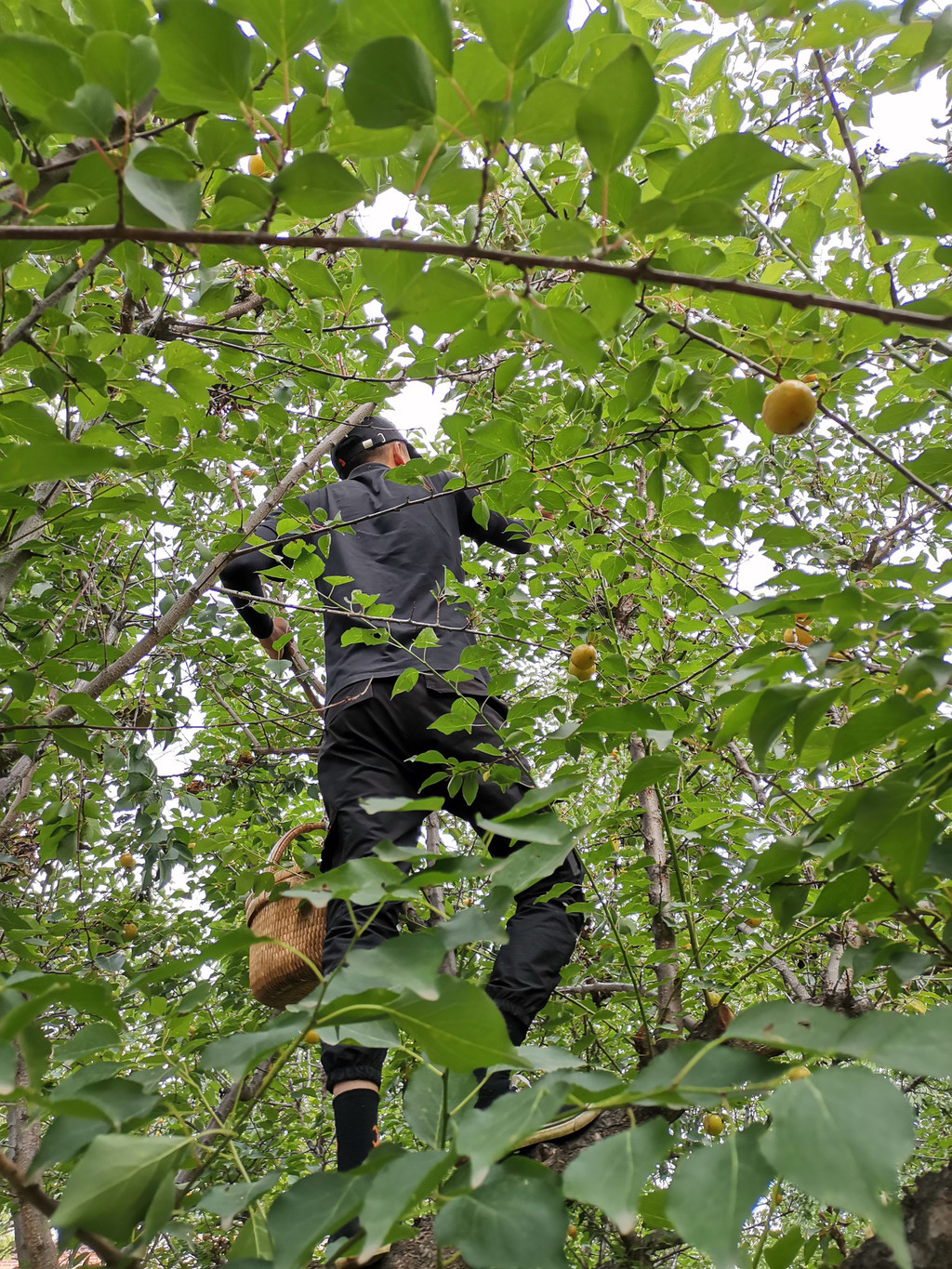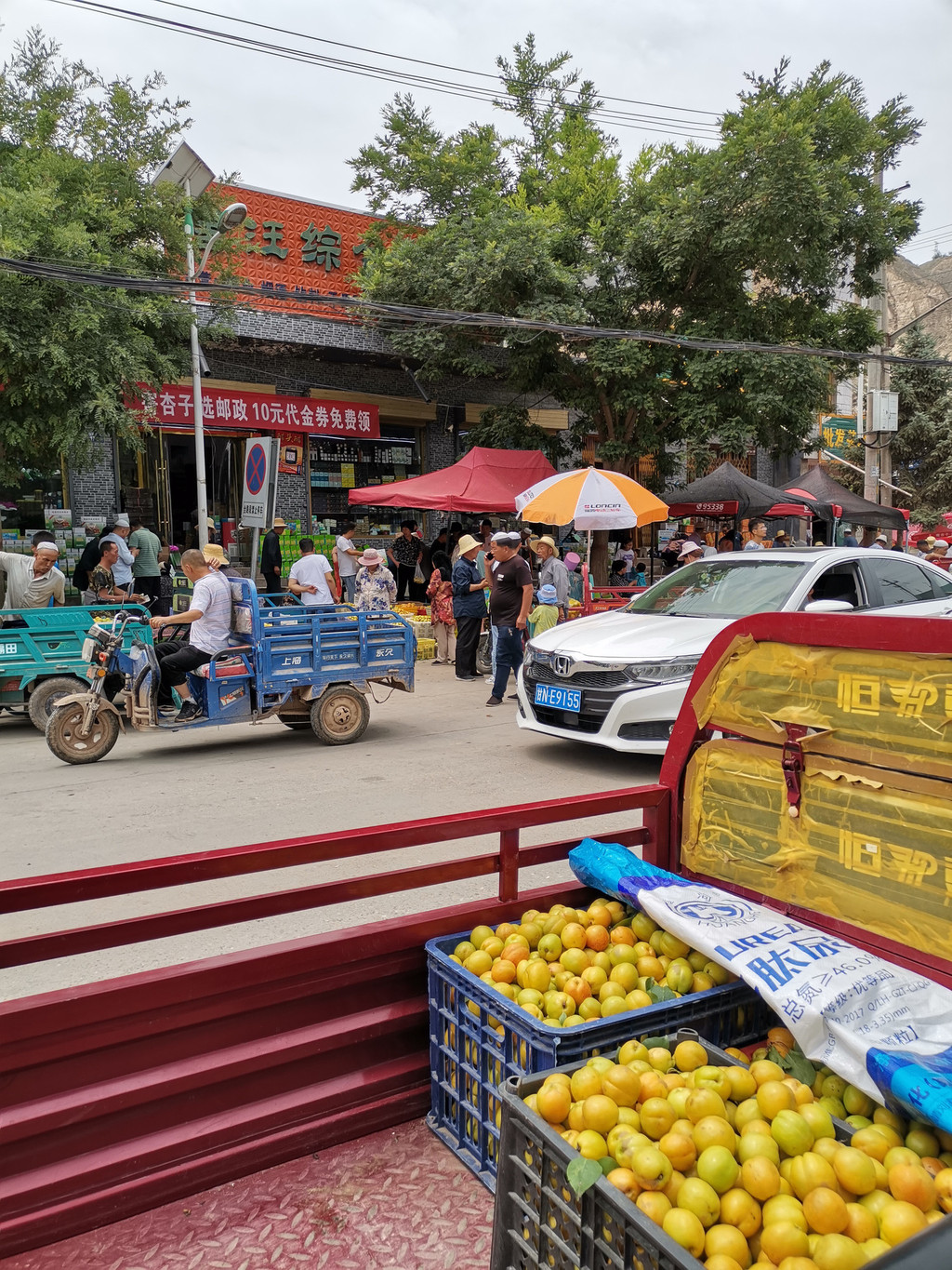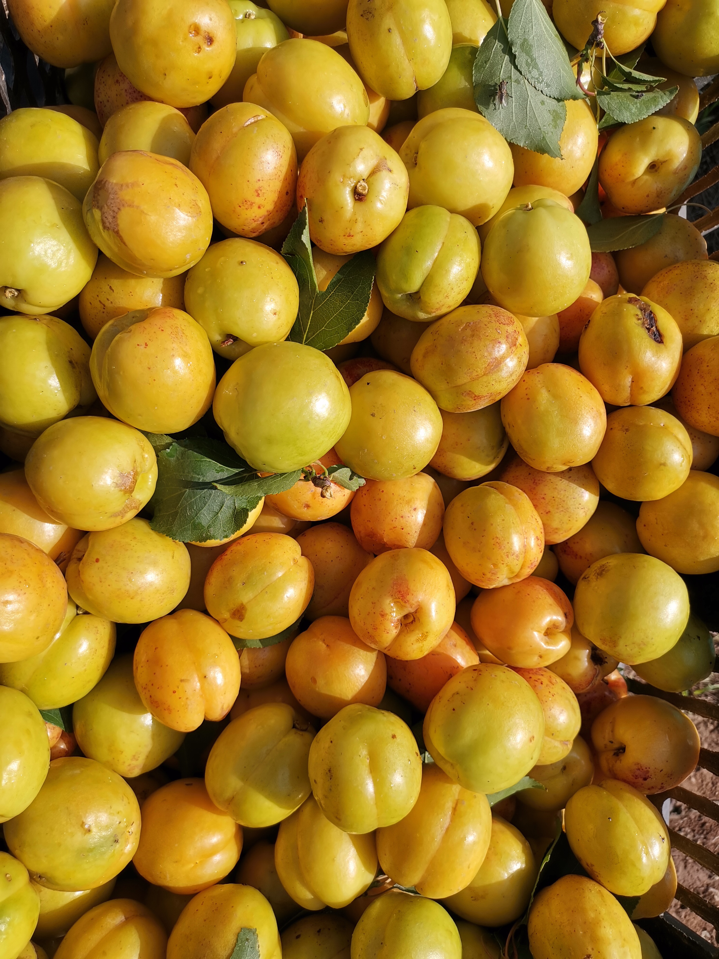 七月杏香,从早到晚,田间地头,沙沟上下,不是摘杏人,就是买杏人和卖杏人。引梯、克劳、蓝蓝是摘杏人必备的“三件套”,人当然是必须的。支引梯是一件技术活,支好了,克劳里满满当当,支不好,蓝蓝里屈指可数。上上下下之间,早已汗流浃背,不过为了这碎银几两,顾不得许多了。兰驼车、电动车、摩托车以及小轿车来来往往,交通堵塞是常有的事,尤其是以沙沟三岔路口为最甚。叫卖声、喇叭声声声入耳,热头越强,买卖越好,要是遇上一场过雨,沙沟里不见人影不说,树上的杏也是纷纷落地,再也风光不起来了。即便是赖在树上,也早已成为歪瓜裂枣,无人问津了。这不是没有先例。