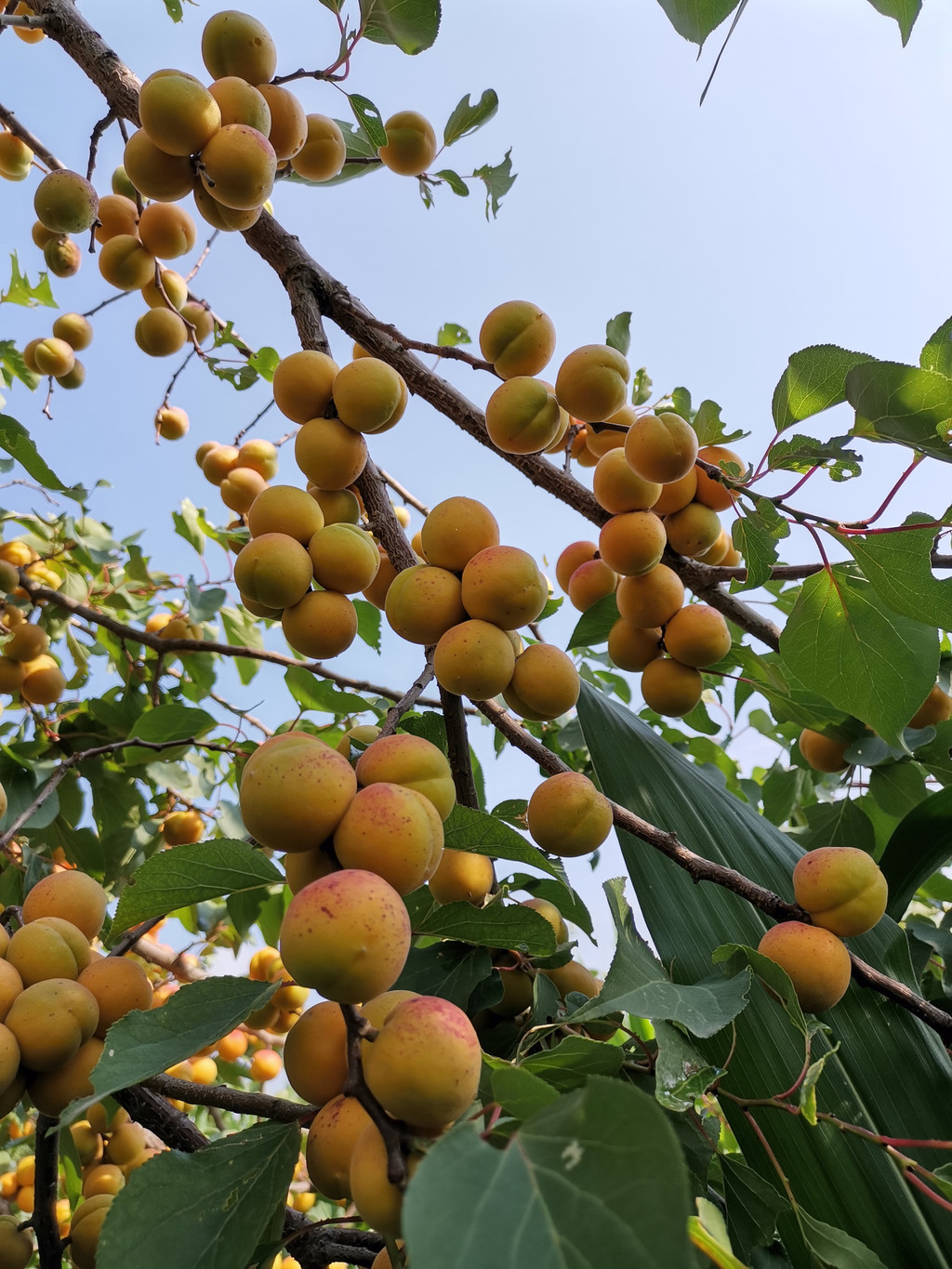 还好,最近的热头很给力,杏黄了一茬又一茬,游客来了一批又一批,顶着红热头,也要冲着大版杏的诱惑来一