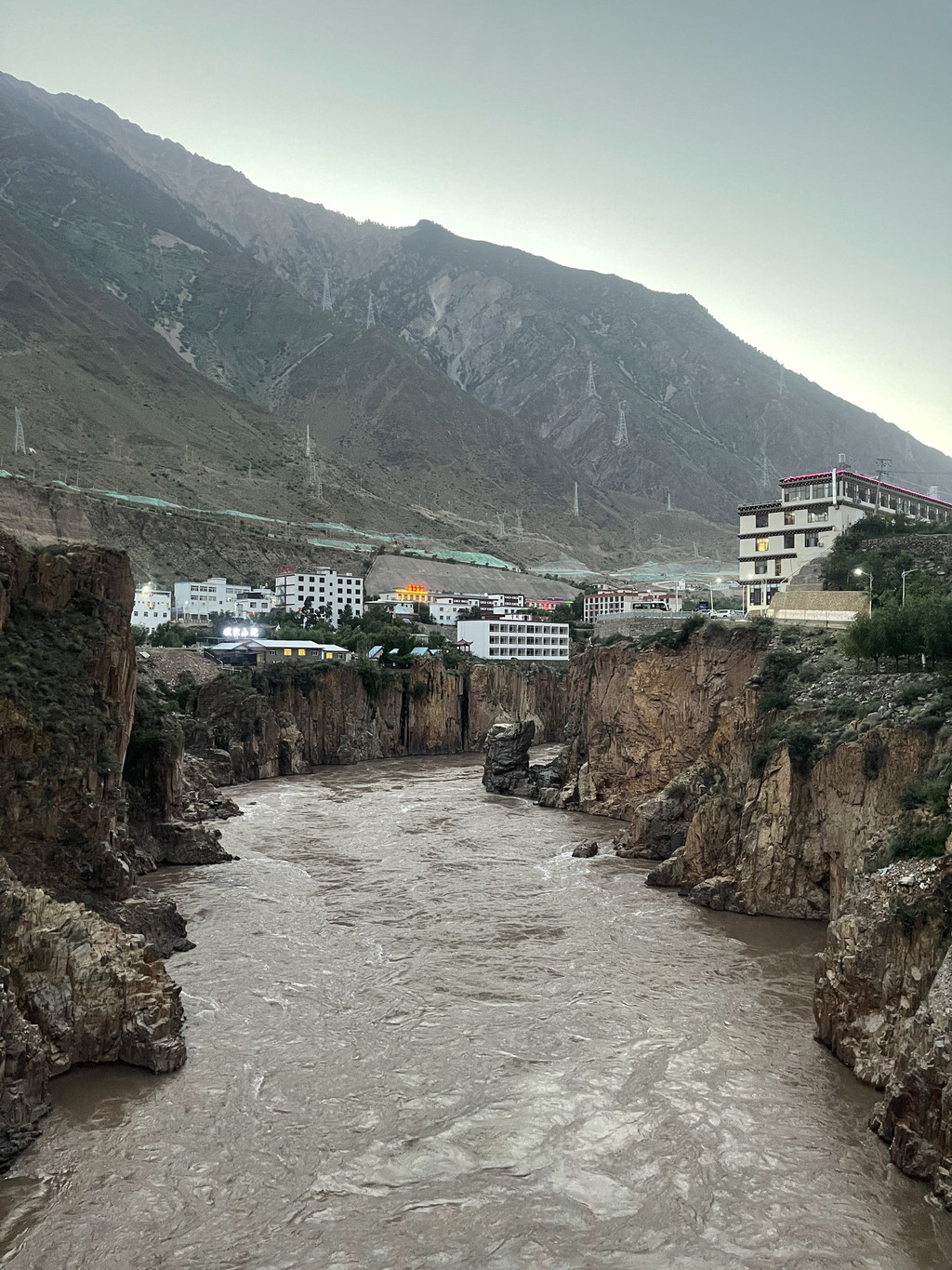 进入了西藏的第一个县城芒康(海拔3869米)!开始排队通过芒康检查站。