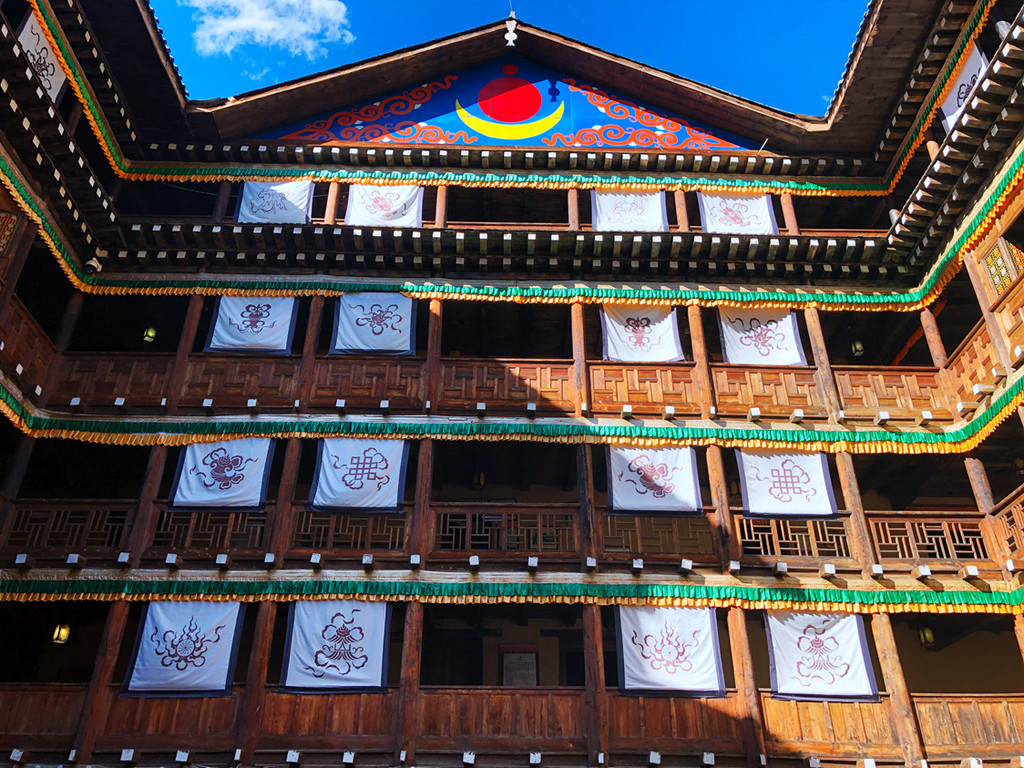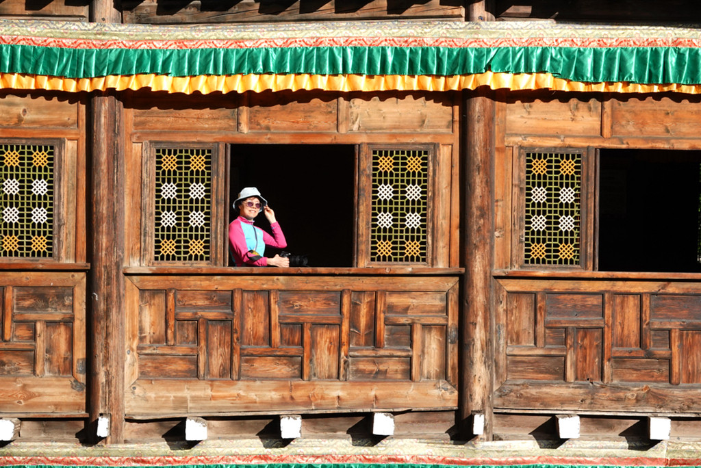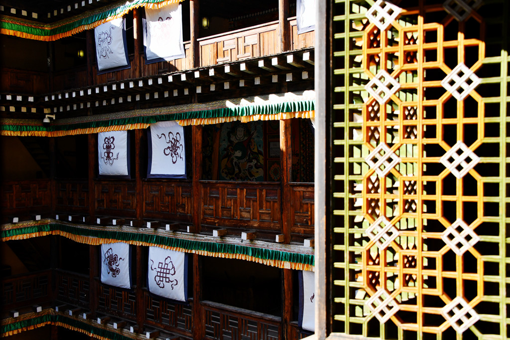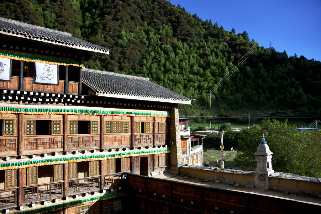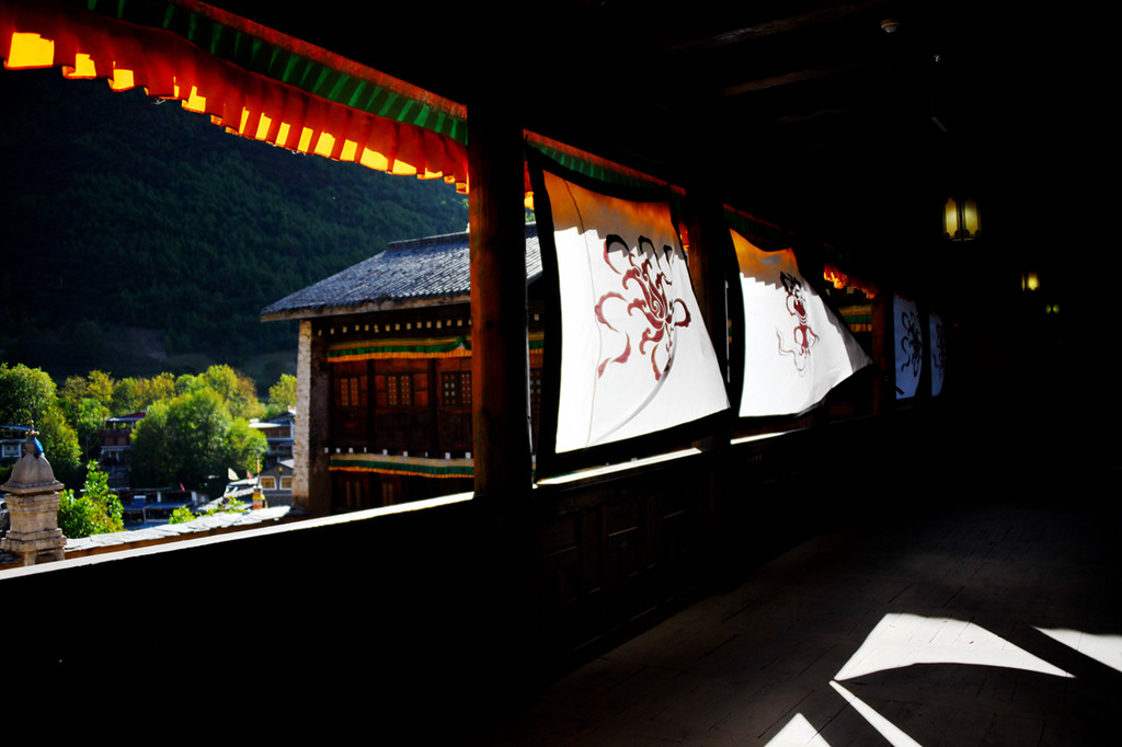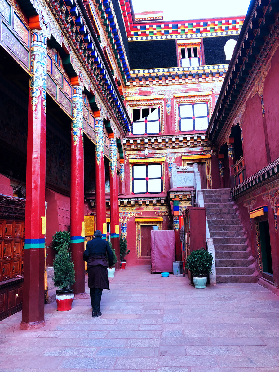 印经院里最好看的地方是天台和晒经版的长廊,阳光下,整个建筑色彩斑斓、金碧辉煌。我流连忘返不愿离去。