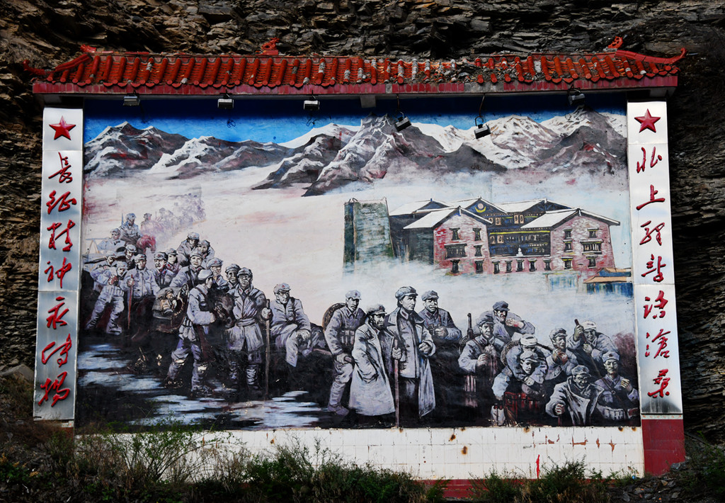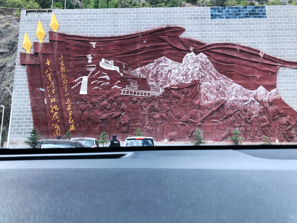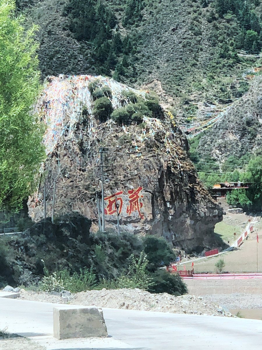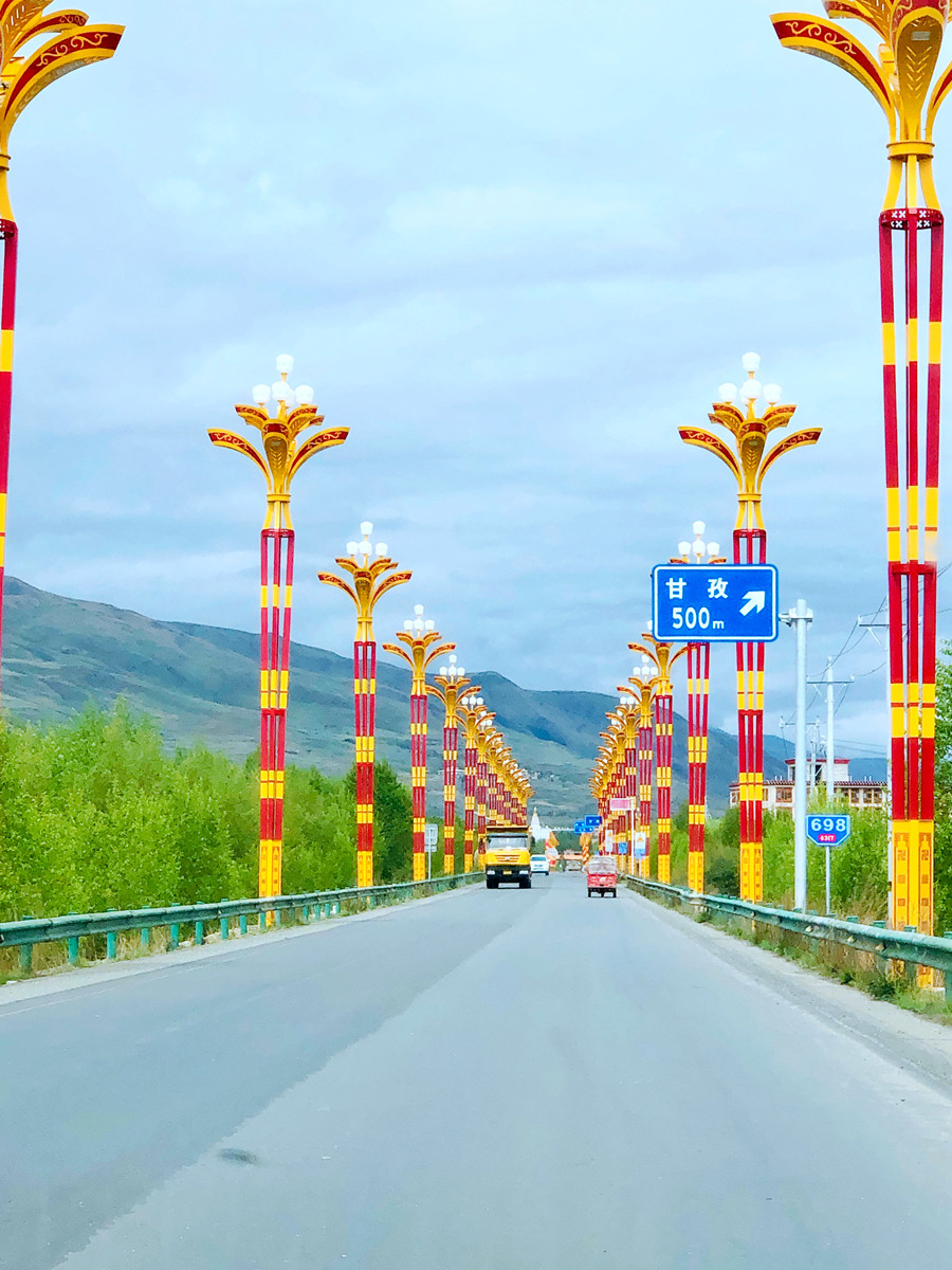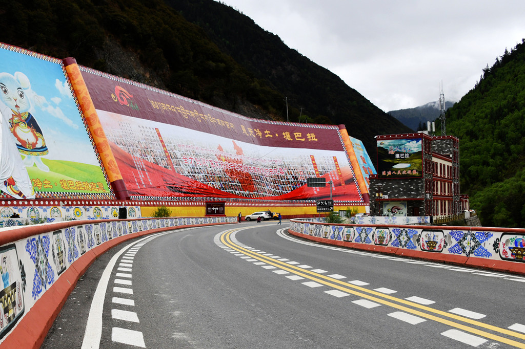 壤塘县和炉霍县的分岔路口是一景,山体一整面墙上巨大的壤塘县宣传墙,特别的醒目,七彩的道路七彩的高速护栏,都吸引你不得不停下脚步。