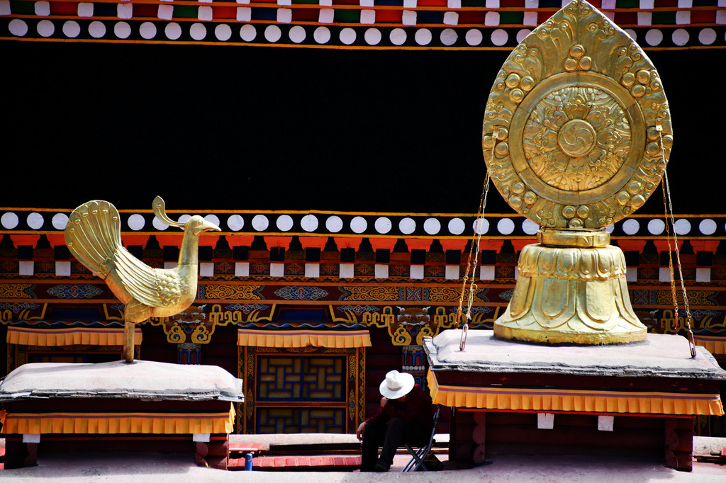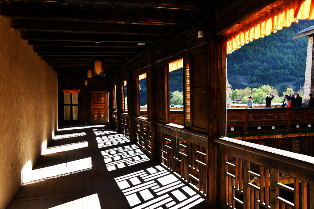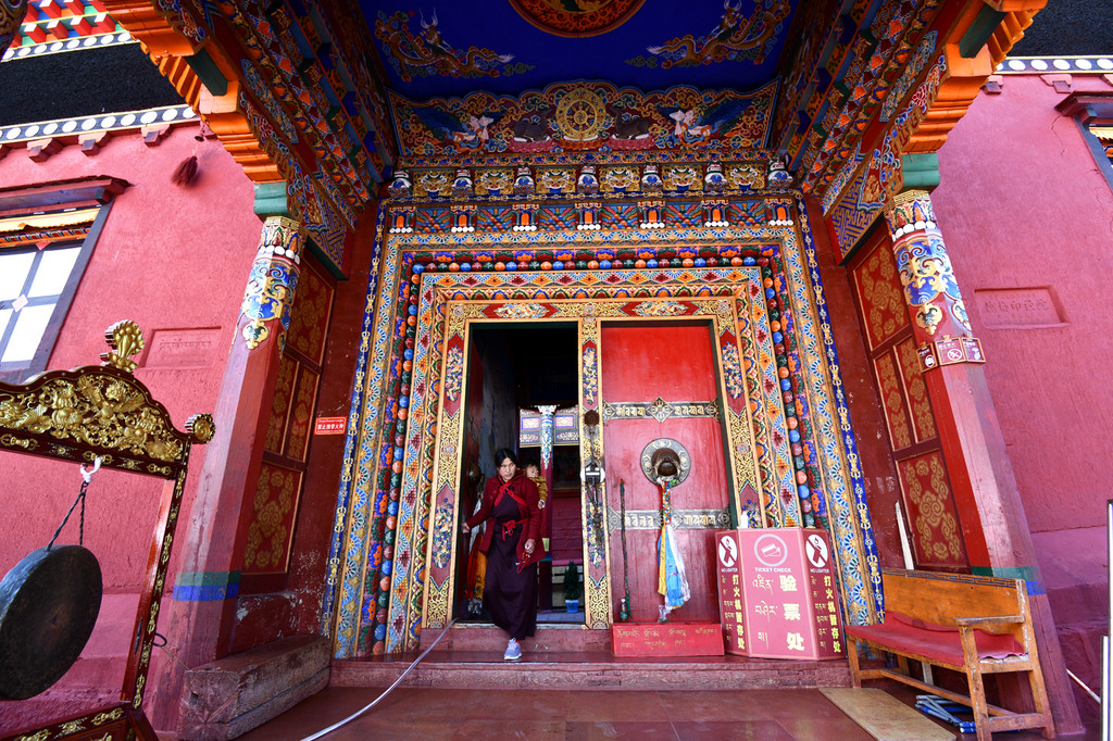 远远望去,寺庙颇具规模。这座建于1686年的寺庙,由于地处偏远,到寺庙上香火的人不多。加上这几天色达寺正在举办法会,据说都去了色达,寺里就见到一个喇嘛。走到寺院门口,只见寺内异常安静,只有一处漏雨的地方发出滴答滴答的水声。在征得喇嘛同意后,我悄悄地走了进去。心中突然出现一种异常的宁静、一种超脱的感觉,心中杂念一扫而光,情不自禁两手合十于胸前。