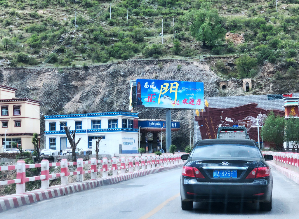 金沙江是四川和西藏的天然分界线,川藏北线G317金沙江大桥是链接四川和西藏的一条重要通道。向东连着四川甘孜德格县,向西连着西藏昌都江达县。这里是从四川入藏的咽喉要塞。当车行驶在大桥上,远远的就看见前方有一个大大的特别的广告牌“西藏正門江达欢迎您”,那个“門”字故意写的大大的,有点搞笑,好像从其它地方进藏就不是走正门了。我们来到了藏东门户,被称作“西藏解放第一村”的岗托村。
