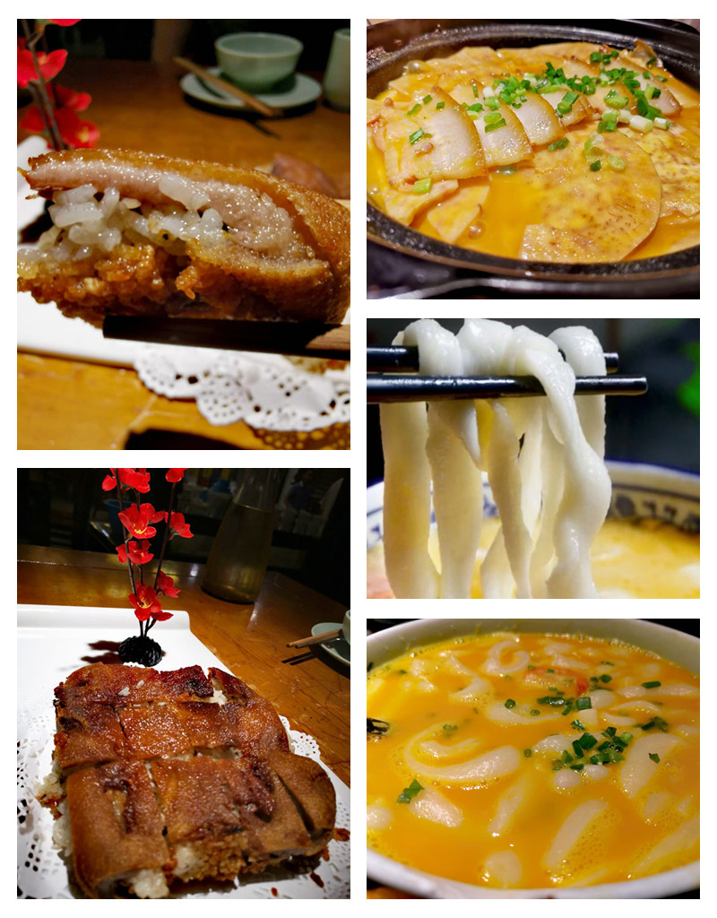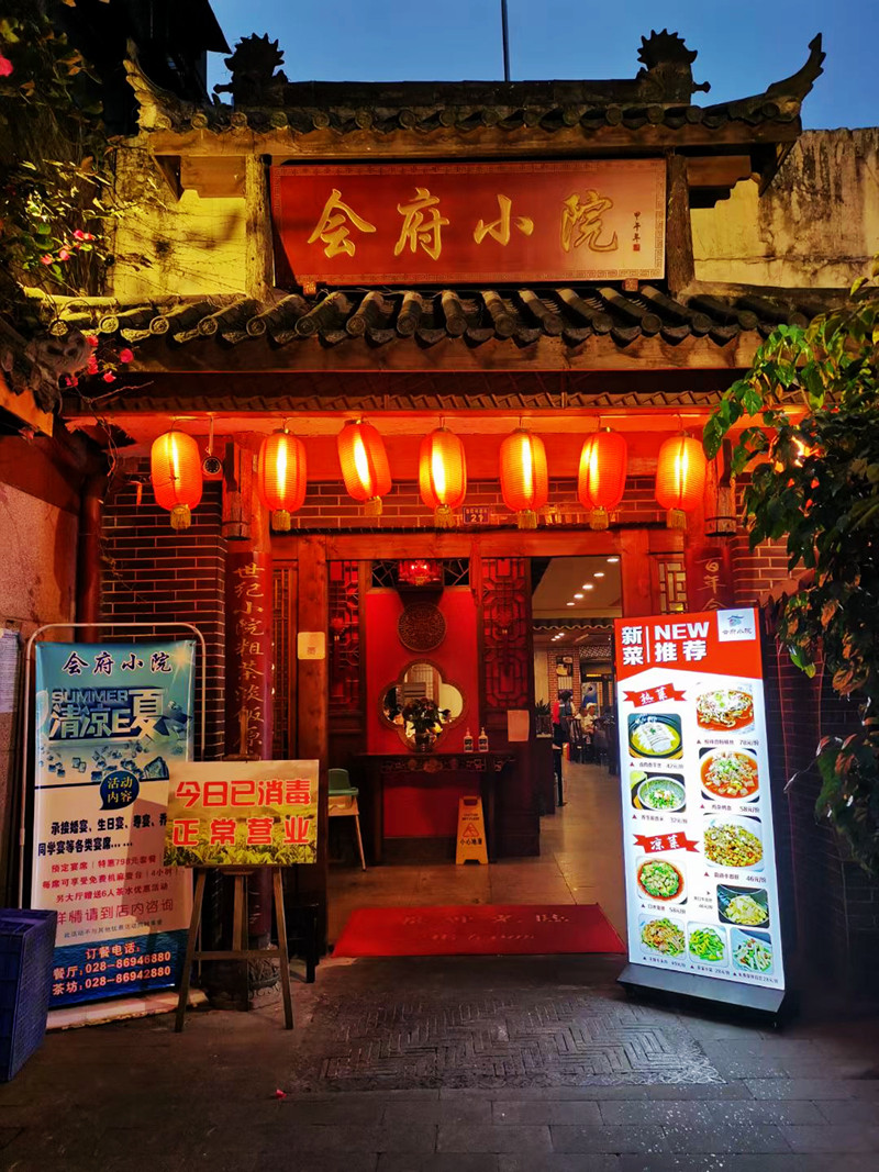 吃当地美食,是旅行途中一件不可或缺的事情。当晚,在附近小巷子里找了一家饭馆—会府小院,几个特色菜真的不错:特色糯米鸭:上面一层是香脆鸭皮,底下一层是香喷喷锅巴,中间夹着软软的糯米混着几颗花椒;卤肉香芋煲:肉香和芋头的香完美地相互渗透在一起;手工番茄面筋,番茄青瓜汤够鲜,面够筋道。吃得心满意足,好好睡一觉,明天上路。
