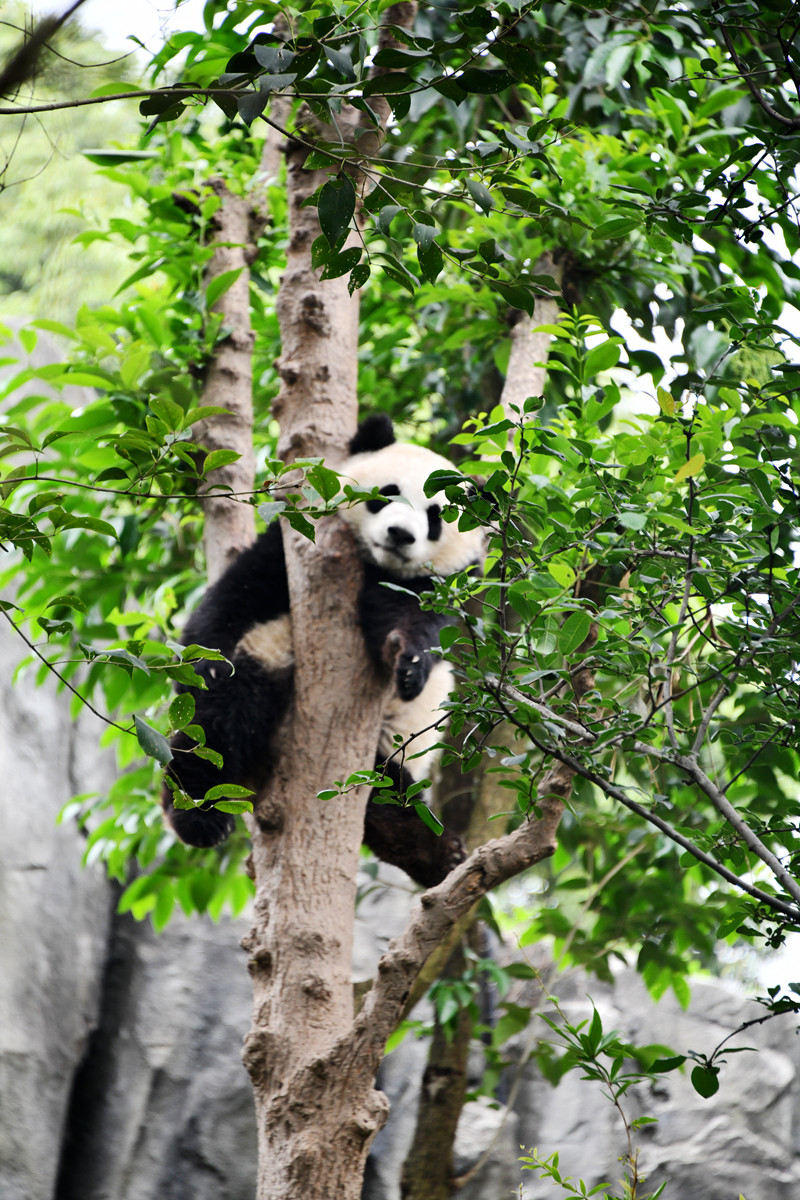 在成都只有半天时间,我们选择去熊猫繁育研究基地。虽然多次到成都,但第一次走进熊猫基地。这里环境很好,绿竹成林,可爱的大熊猫在这里生活真是太享福了。有的熊猫自顾自开心地吃着竹子大餐,有的爬到树上,胖墩墩的身材似乎对它们上树没有一点影响,有的则呼呼大睡。不管它做出什么动作,发出什么声响,它那憨憨的样子都能得到人们的喜爱,难怪是国宝。