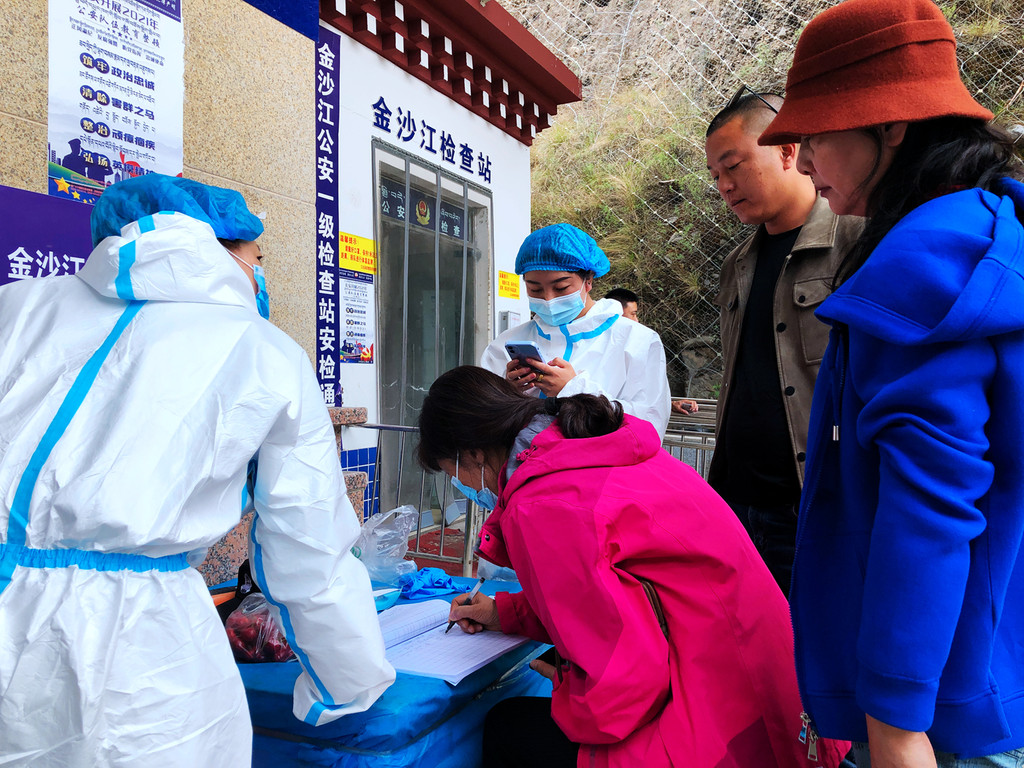 过了金沙江大桥就是西藏方面的金沙江检查站,我们三个来自广东的被认真询问登记拍照。通行大数据+身份证+核酸检测报告。幸亏21号在成都做了核酸,22号拿报告,距离7天内有效还有3天。看起来进入拉萨前还要再做一次核酸,拉萨要求核酸检测三天内有效。