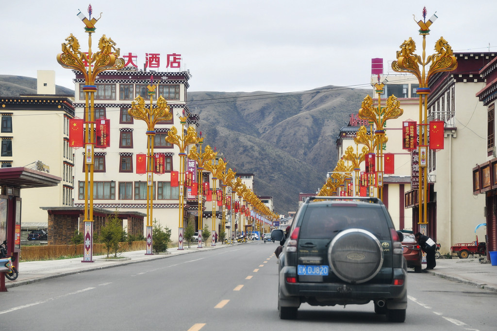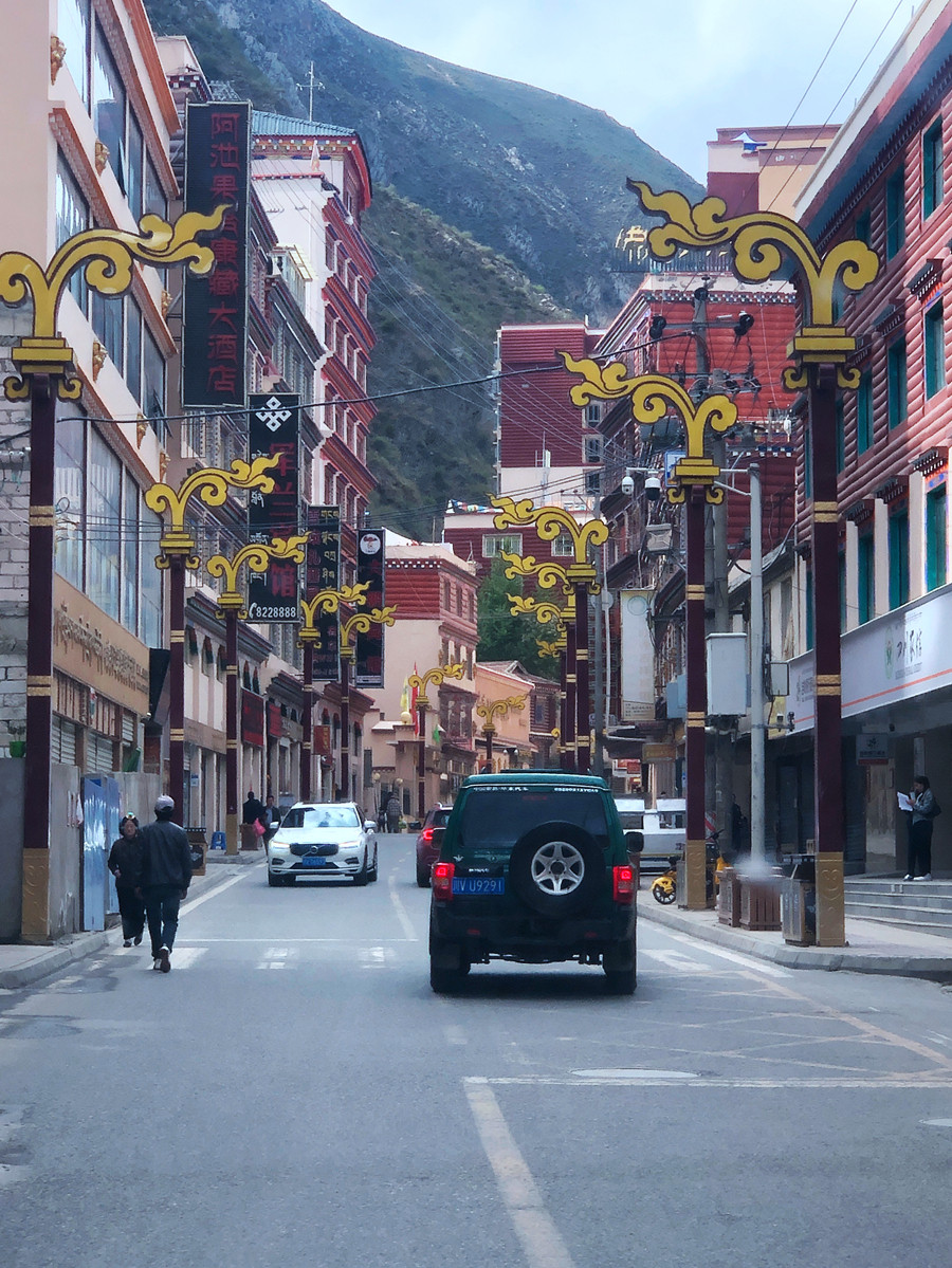 下午不到5点就到了德格县。这是一个依山而建的小县城,狭窄的街道,街道两侧似乎长得都一样的屋子,和街道上那些路灯,都让我充满了好奇。