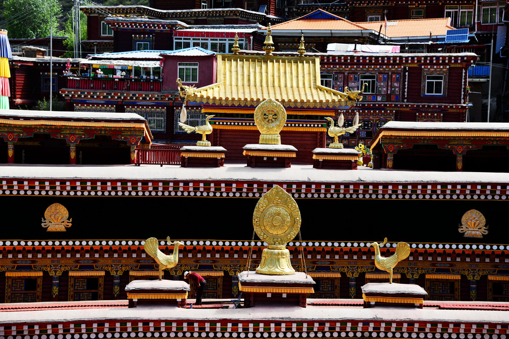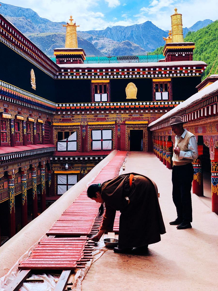 距离德格印经院关门还有半个小时,我们把车直接开到印经院,在外围先看看转转。印经院就在县城里,是很多藏族人心目中的圣地,其地位可以与大昭寺相媲美。据说如果这一生去不到大昭寺,能到德格印经院朝拜,也算是功德圆满了。