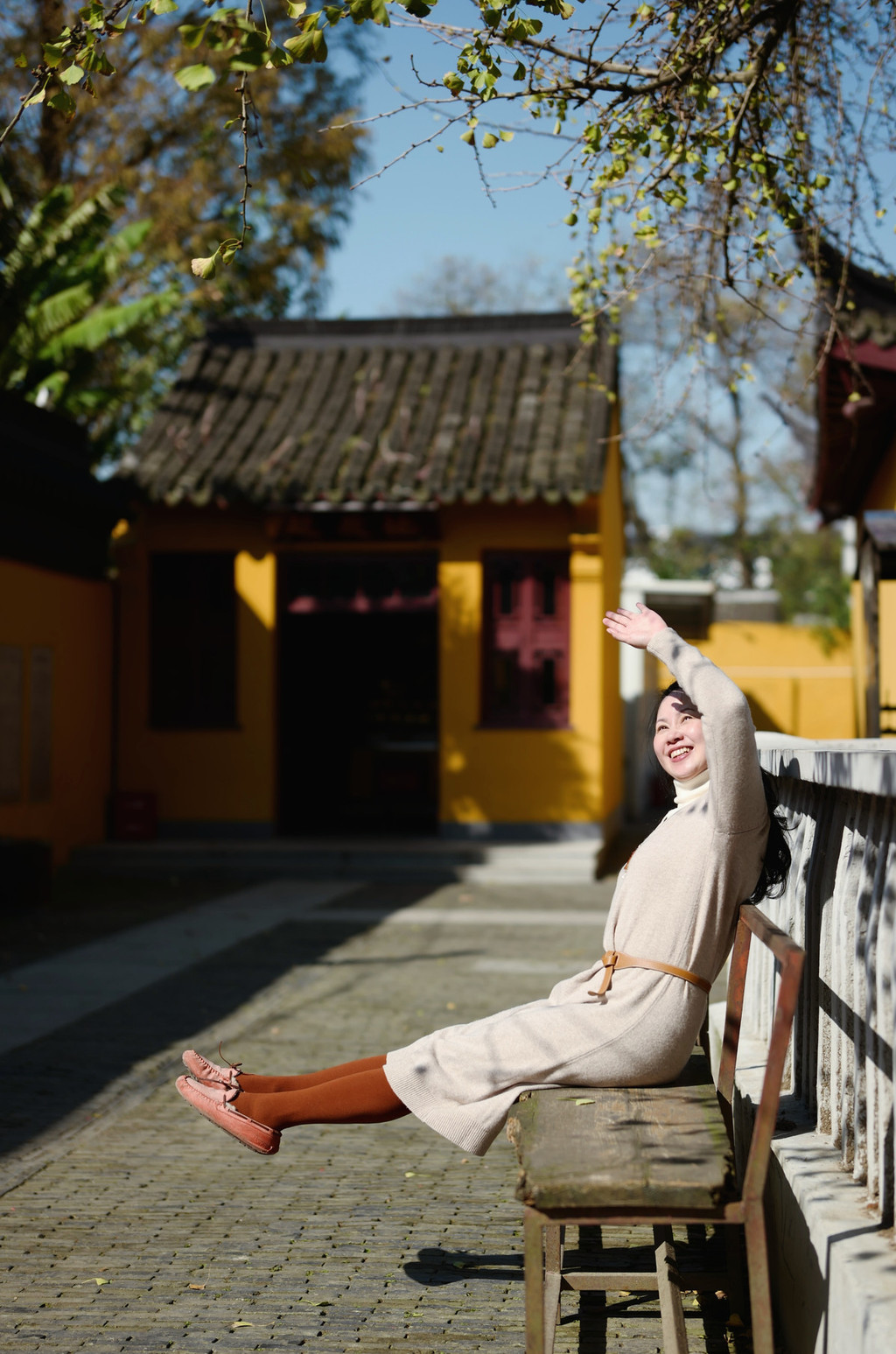 禅寺里,被冬日暖阳包裹着,喝喝茶聊聊天。
