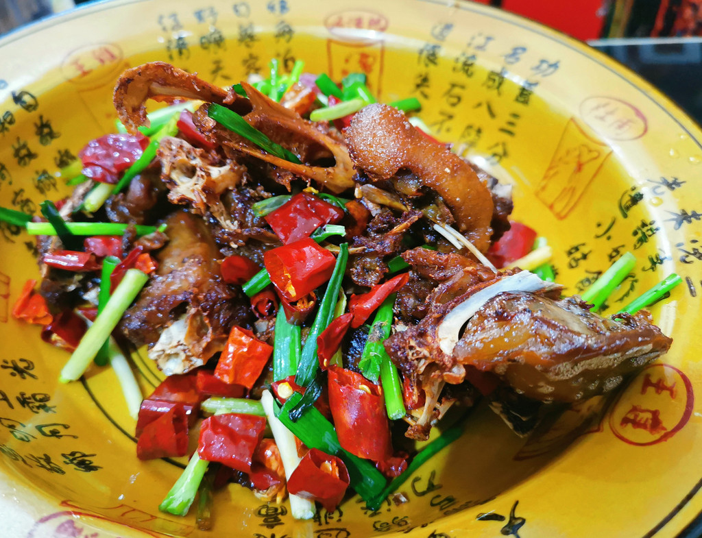 三菜一汤一点心上齐,干锅鸭子、自己包的烧卖很惊艳。我们给老板夫妻提了建议,烧卖里放些冬笋更好,老板连连应答:“是,冬天是要放笋的,是该放笋了。”