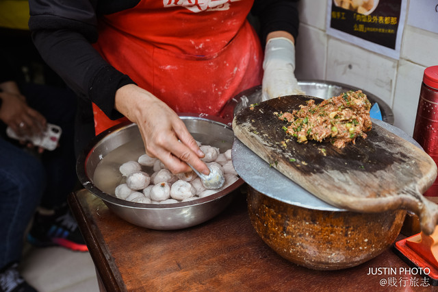 现场可以看到包丸子的过程,里面的肉馅调味不错,汤头就稍微清淡一些,不过毕竟主角是鱼丸嘛。