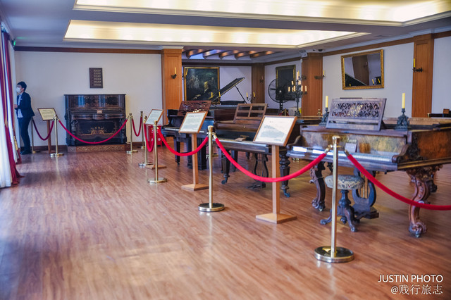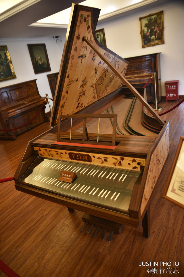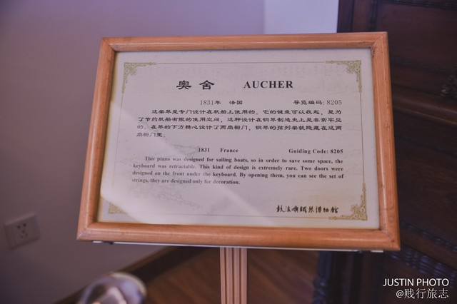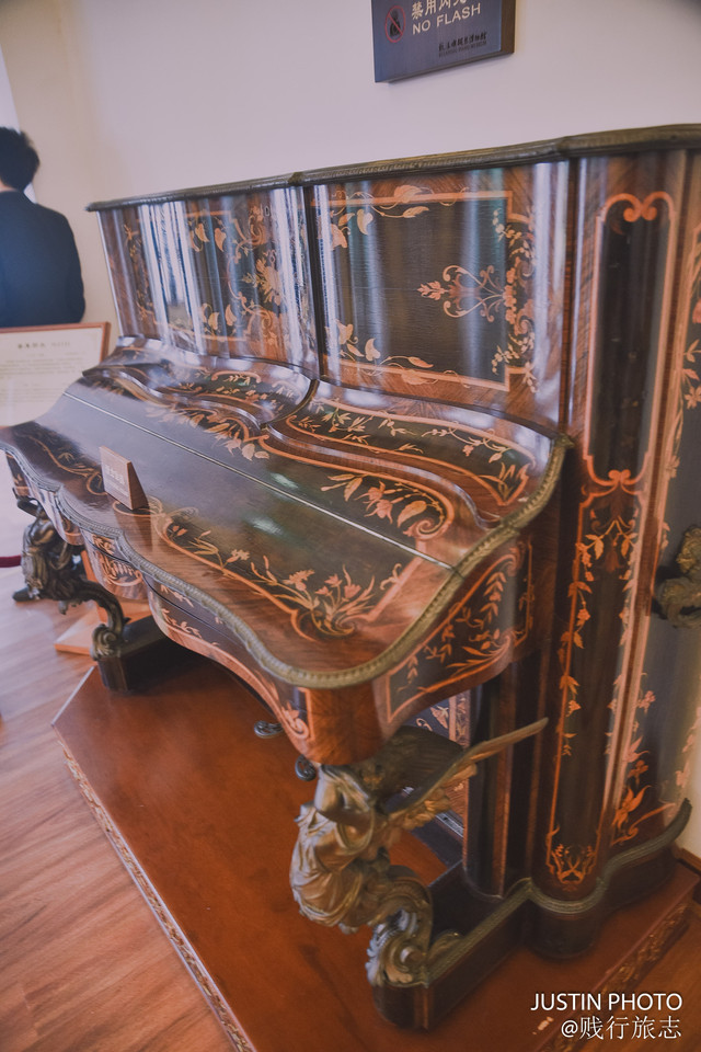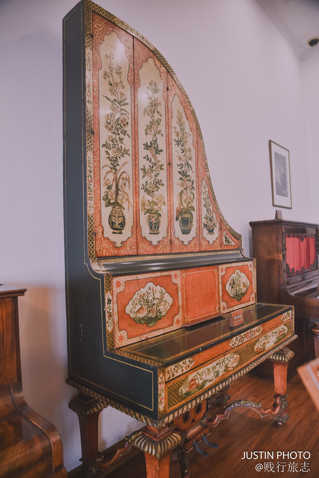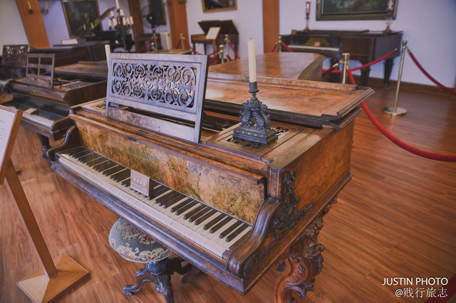 不得不说,看到这么多钢琴陈列在一处,还是很震撼的,特别是这些钢琴一看就是有一定年头的古董,果然,1811年英国伦敦的科勒德、1831年法国的奥舍、1977年澳大利亚的克莱格……建造于不同年份、来自不同国家的钢琴都被珍藏在此,据说就连钢琴上的烛台装饰竟然也有着上百年的历史。
