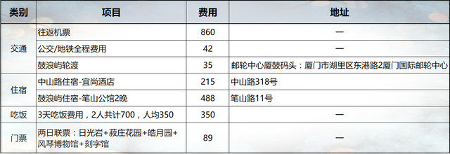 出行:从广州到厦门方式很多,飞机1-2小时、高铁5小时,无论选择哪一种,价格都不算贵。