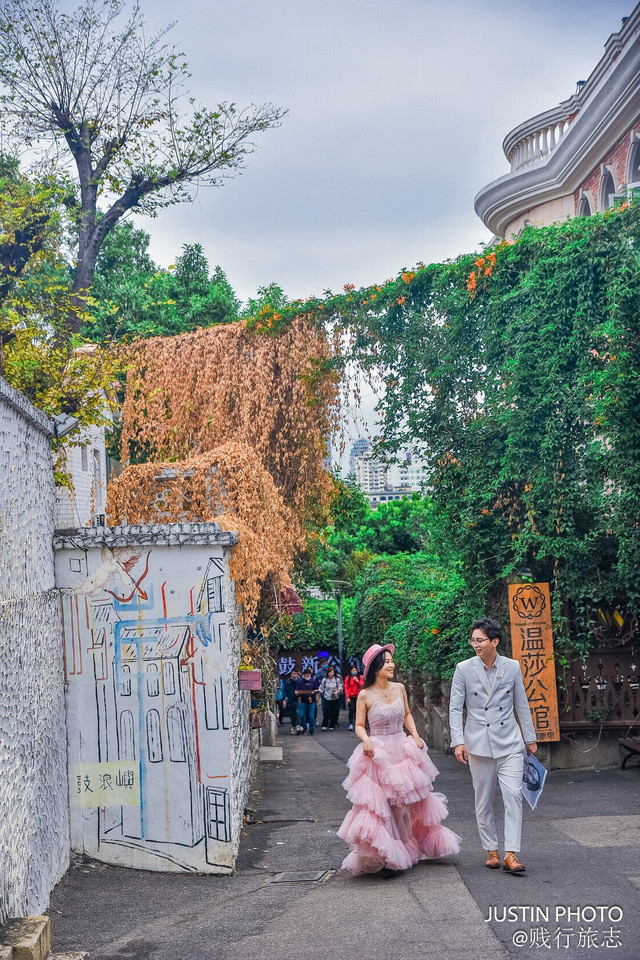 成功地在龙头路扫了一轮街,吃得饱饱的两人再度出发。虽然鼓浪屿上景点很多,但其实一路上都是风景,老建筑更是随处可见,而且大部分经过改造,变得十分适合拍照。