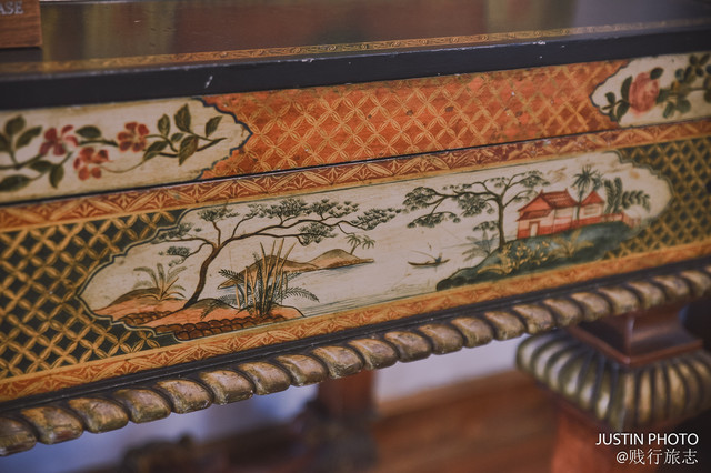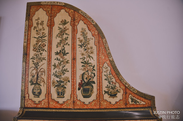 在众多钢琴里,我们还发现了中国元素,英国罗杰斯钢琴上,发现了中国的八宝瓶、插花、山水、杨柳、花鸟等图案,活脱脱就是将中国山水画上的元素搬到了钢琴上,原来,19世纪时欧洲贵族曾兴起一阵“中国风”,那时中国制造的瓷器远销国外,贵族都以拥有中国家具为荣,所以也就有了这种将中国元素融入家具设计中的产物了。
